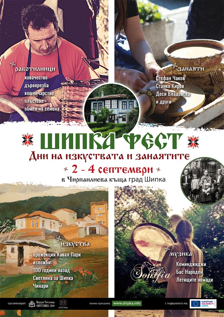 От 2-ри до 4-ти септември в колоритното подбалканско градче Шипка ще се проведе Шипка Фест - Дни на изкуствата и занаятите за четвърта поредна година. Домакин на събитието е Етнографски музей Чирпанлиева къща, който се готви да посрещне майстори занаятчии, музиканти, артисти и любители на българските традиции и занаяти.