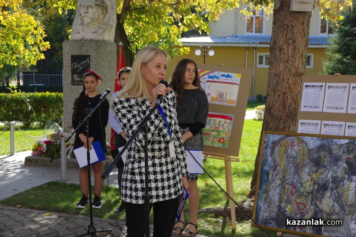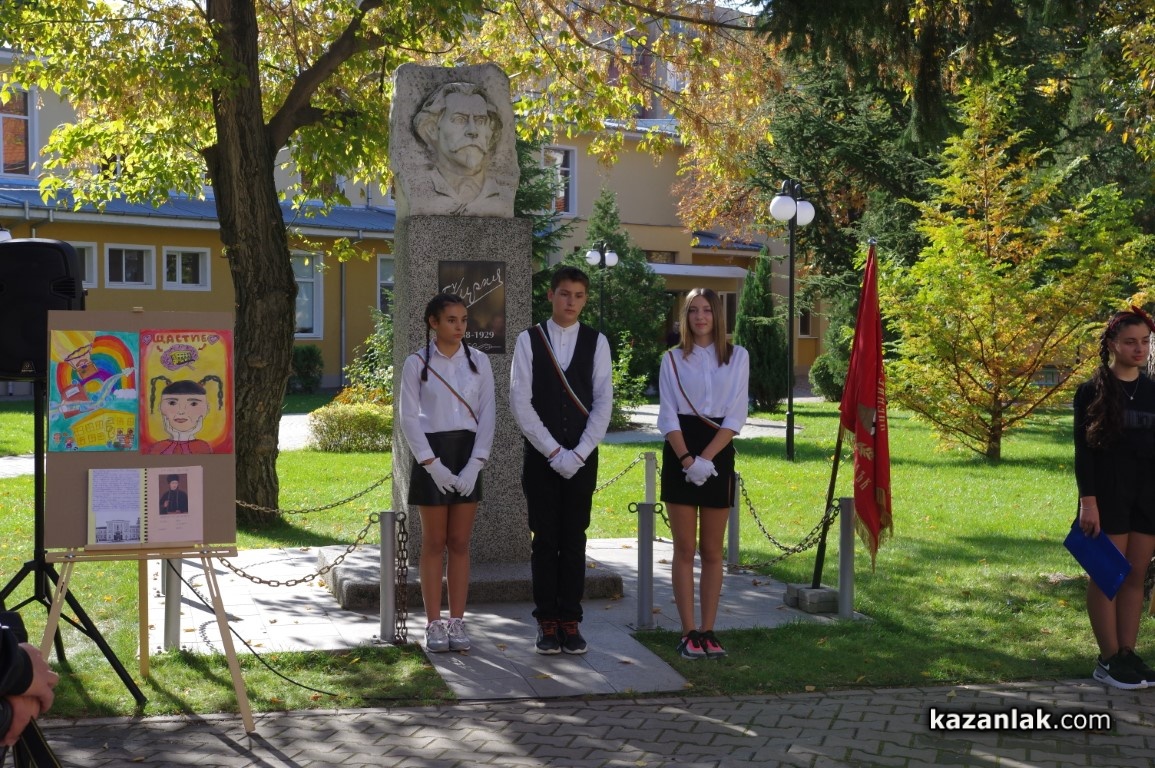 Ученици от всички класове поднесоха цветя за всички знайни и незнайни будители на паметника на Георги Кирков в двора на училището.