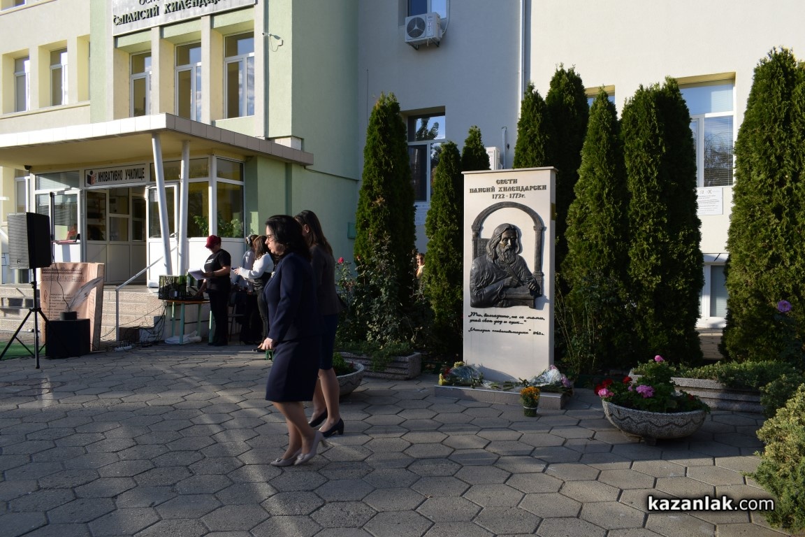 Директорът на ОУ „Свети Паисий Хилендарски“, Мария Колева се обърна към присъстващите със следните думи: "В днешният ден, както и в следващите дни ще се кажат много хубави слова, ще се изпеят и много песни за всички онези българи, които отдадоха живота си и делото си за това България да има по-добро бъдеще. Ние сме горди, че носим името на един от Народните будители, за който казваме, че е родоначалника на Българското Възраждане - Свети Паисий Хилендарски. Тази година 2022 е много особена и свързана с него по следния начин - навършват се 300 години от неговото рождение, 260 години от написването на История славянобългарска, както и 60 години от неговата канонизация. Затова за мен е особена чест, днес да посрещна всички вас в двора на нашето училище. Ще се обърна със специална благодарност към моите колеги директорите на училищата, на детските градини, културните институции, че уважихте нашия празник и споделихте нашата радост. Аз вярвам, убедена съм, че вие представлявате институции, в които ежедневно работят съвременните Народни будители.