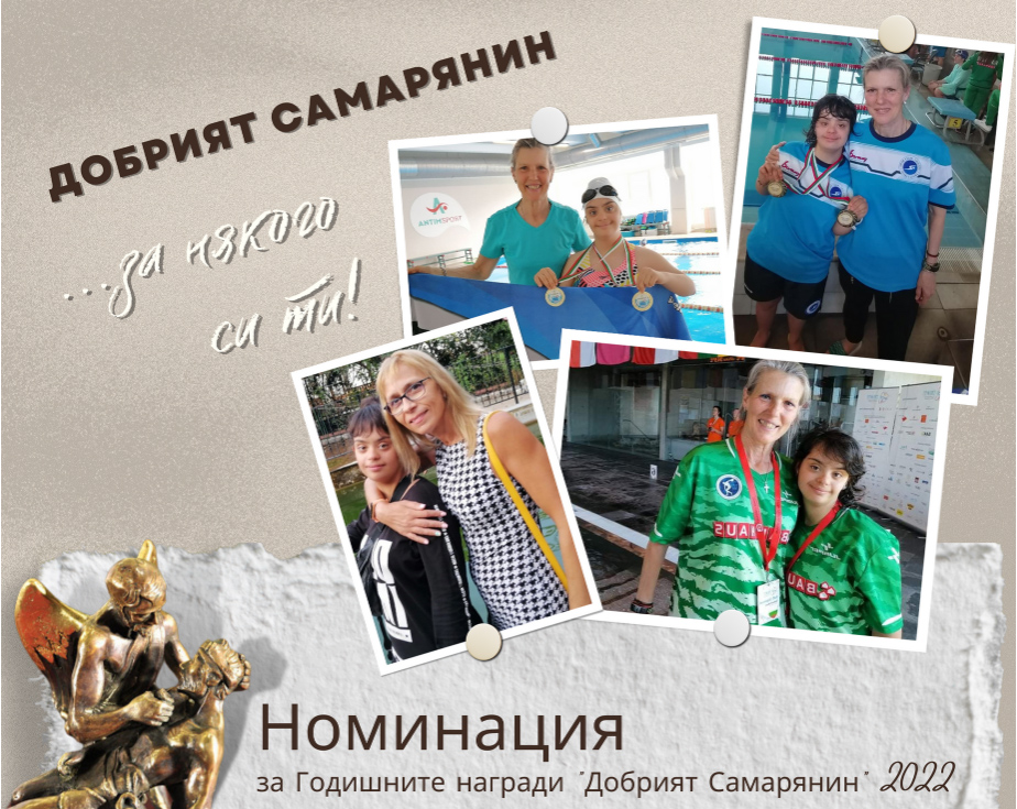 Треньорките по плуване на шампионката със синдорм на Даун Христослава Колева - Теодора Петкова и Виктория Колева, са номинирани за годишните награди "Добрият самарянин".