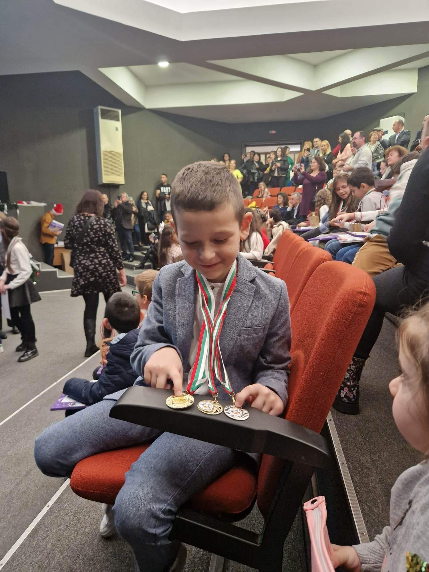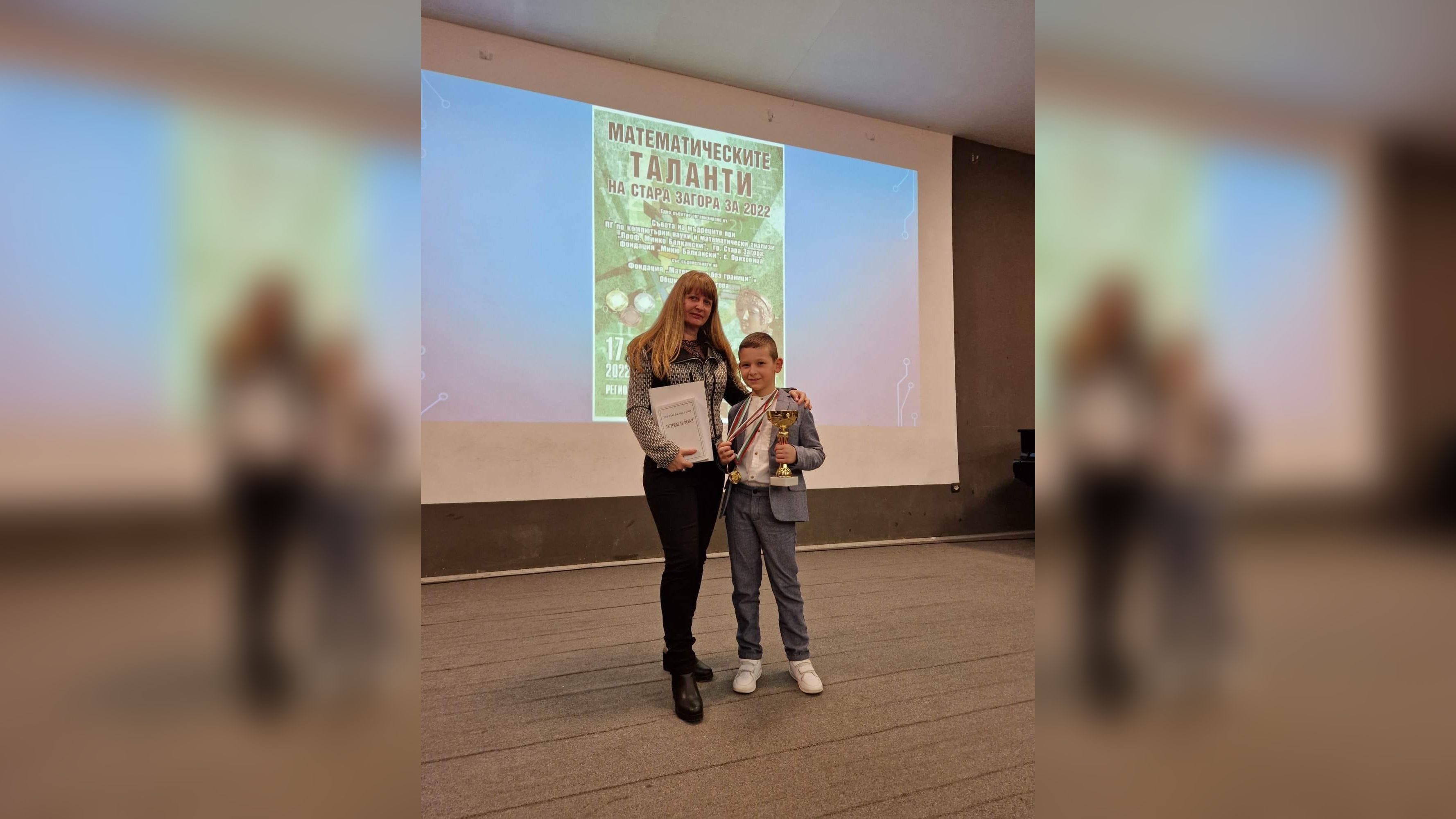 Златно отличие завоюва пъвокласника от А клас, Богомил Виделинов Дончев, ученик от ОУ"Св.Паисий Хилендарски", гр.Казанлък. Детето взе участие в първото издание на състезанието "Стара Загора търси математически таланти - 2022".