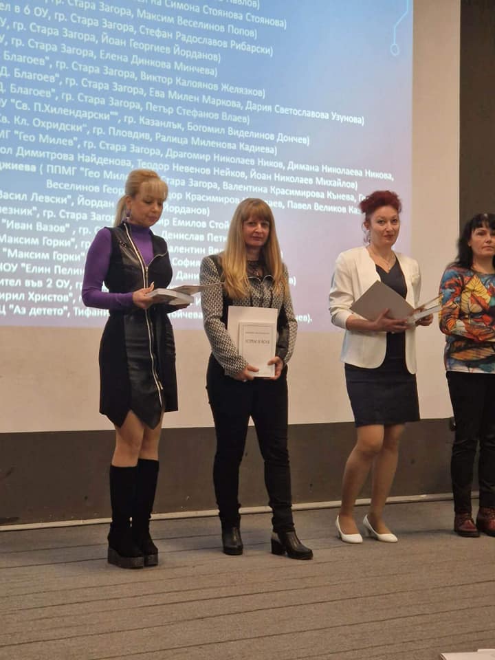 Възпитаникът на г-жа Христина Цветанска се яви на двата тура от състезанието в конкуренция с представители на училища от страната. Форумът бе организиран от Фондация "Миню Балкански", ПГ по компютърни науки и математически анализи - гр. Стара Загора, Фондация "Математика без граници" и Община Стара Загора.