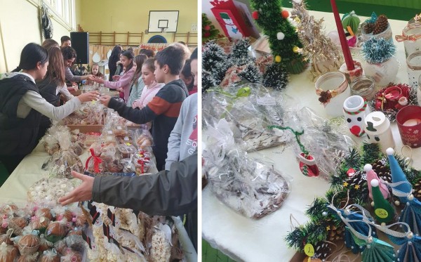 Учениците бяха изработили коледни играчки и гирлянди, сурвакници, различни вкусотии, както и много други изненади за каузата.