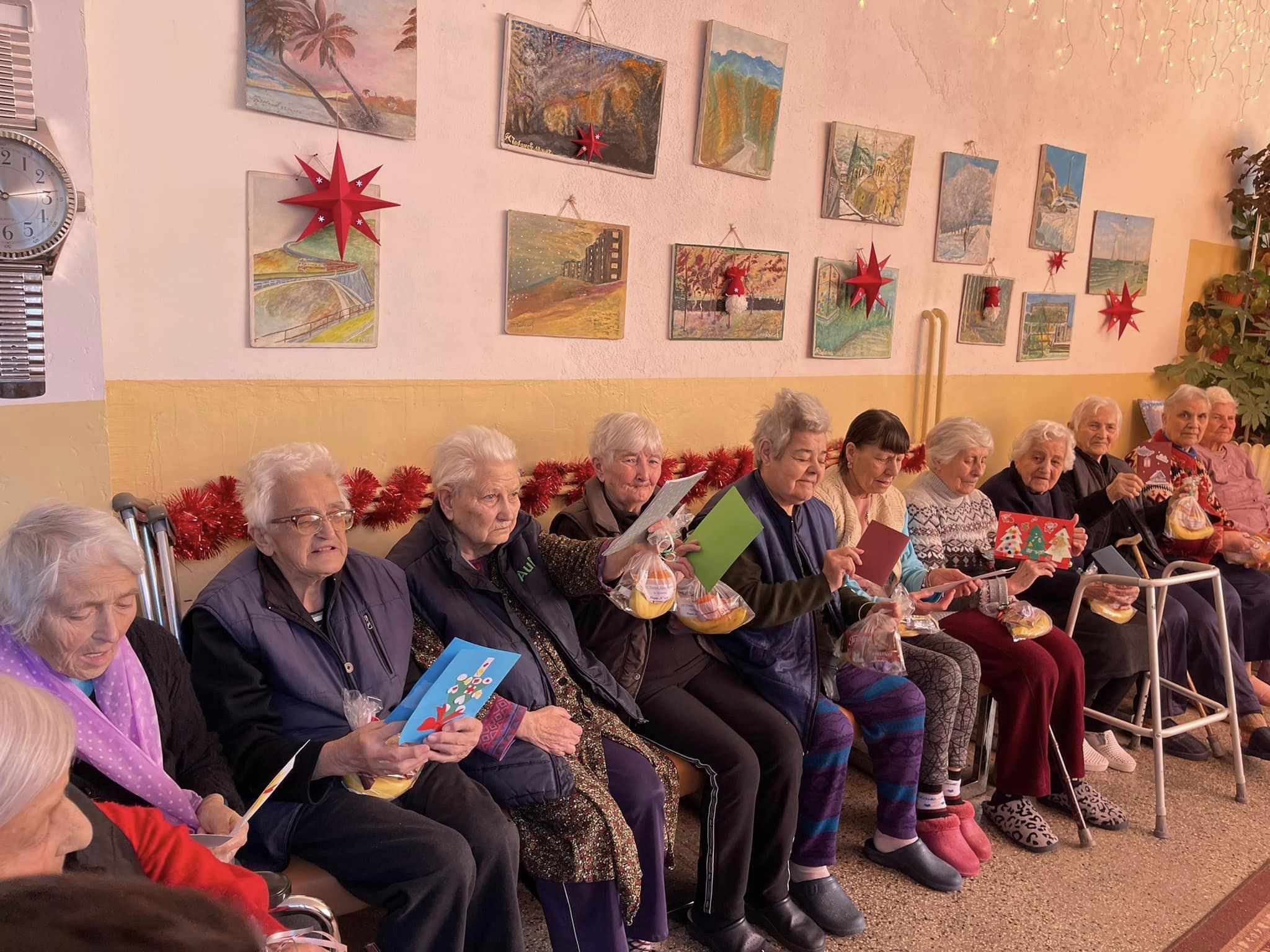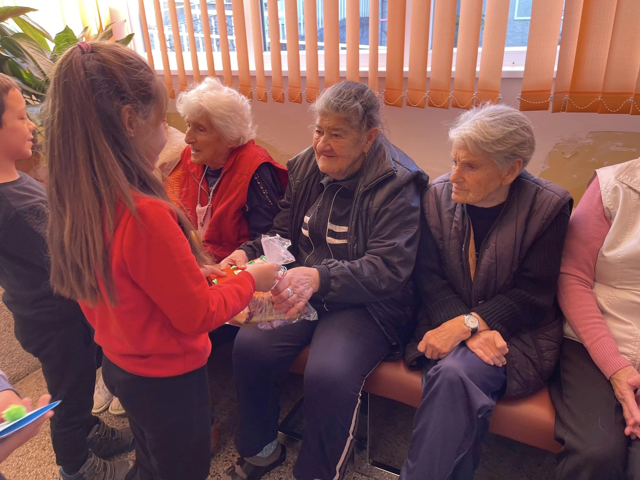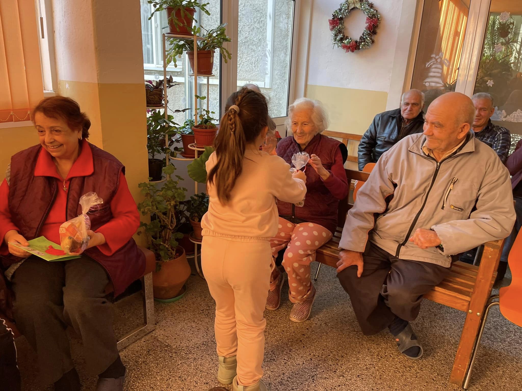 Учениците от 1б клас на ОУ "Св. Паисий Хилендарски", с класен ръководител Атанаска Георгиева, подготвиха изненада за обитателите на Дом за стари хора № 3 в град Казанлък.