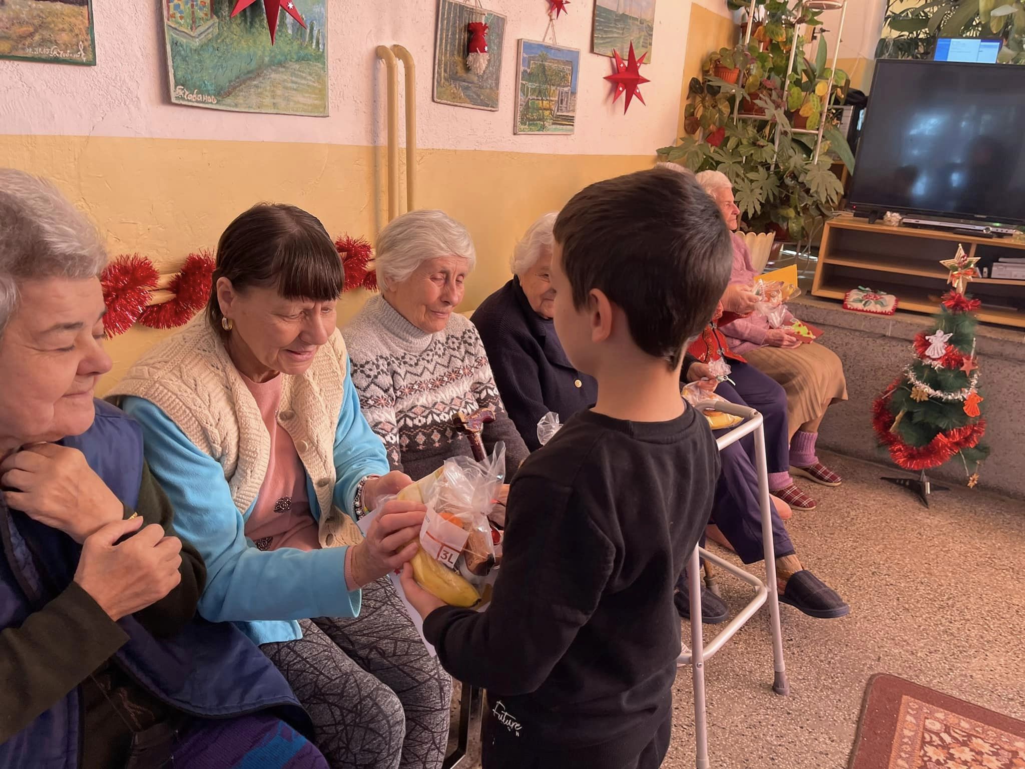 Малка група от децата посети на място възрастните, като им занесе много светлина, обич и топлина. Освен песните и наричанията за здраве и благополучие малките ученици поднесоха и предварително подготвени от родителите им торбички с лакомства.