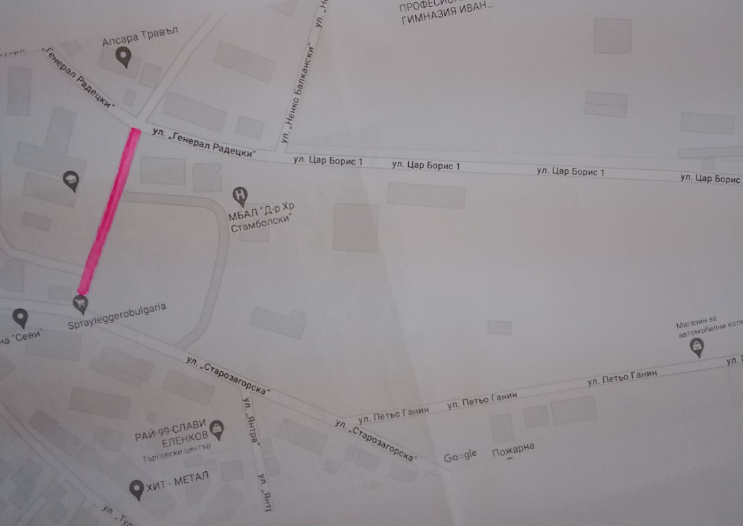 - В участъка от кръстовището на ул.„Генерал Радецки“ с ул.„ Цар Борис I” до кръстовището на улица без име с ул.„Старозагорска“.