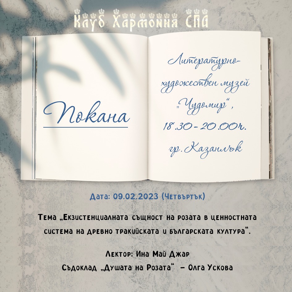 Каузата на Кралство Хармония "Царството на Розата в долината на тракийските царе" вдъхновява дори и през зимата! Каним ви на първото за 2023 година интересно събитие, където клуб Хармония СПА е съорганизатор, заедно с Академия „Май Джар”.