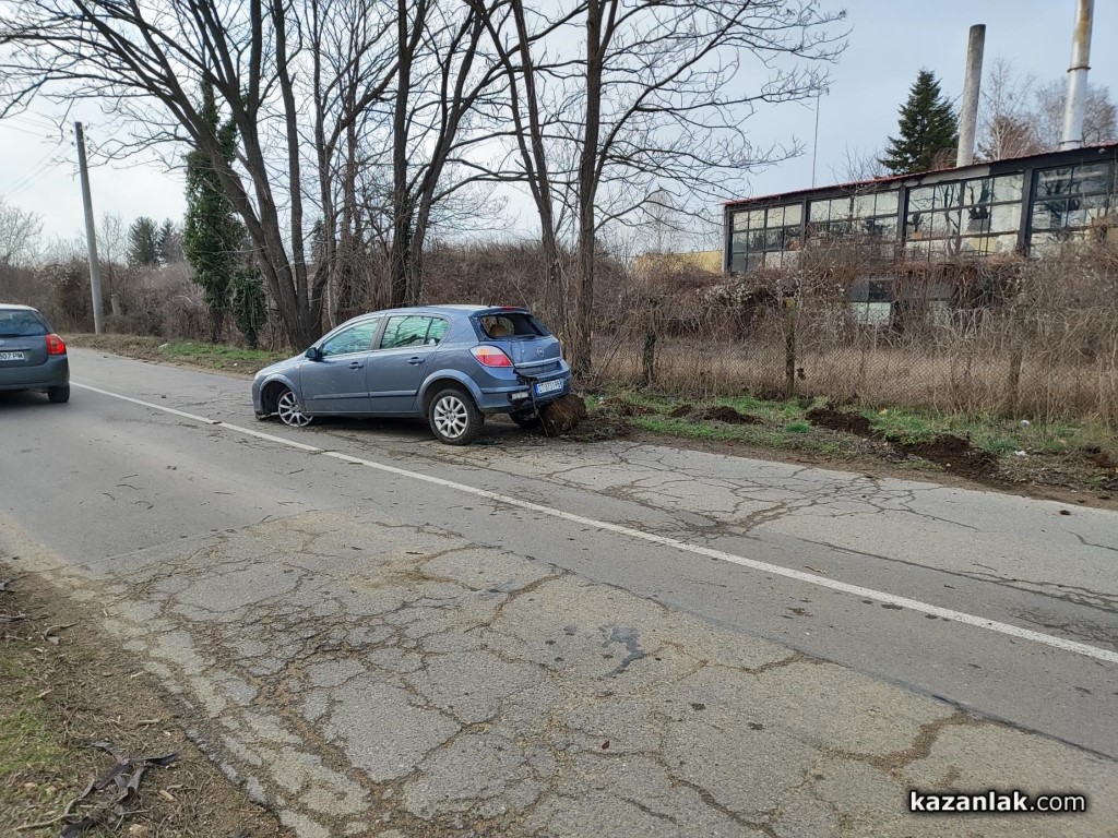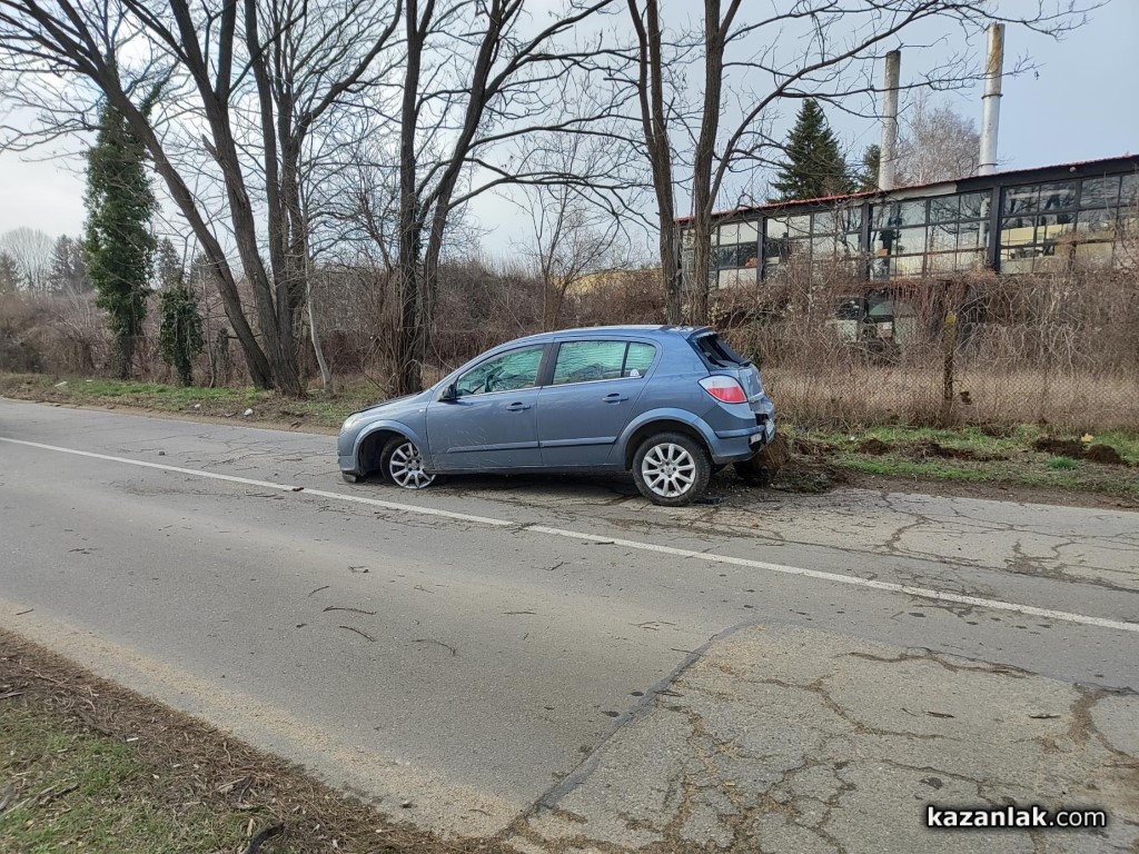 Лек автомобил Опел самокатастрофира на пътя Енина – Казанлък, до Института по розата. Инцидентът стана около 15:00 часа днес, като шофьорът се е движи в посока от Енина към Казанлък, но на завоя в близост до комплекс Шампион губи контрол над автомобила и помита стар дънер и пътен знак до оградата на Института.