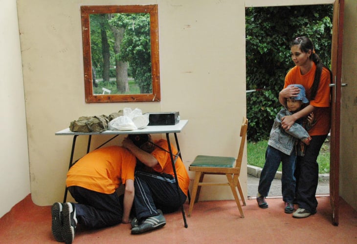 - Заемете най-безопасното място в сградата – под рамката на вратата /в зависимост от типа на строителната конструкция/, близо до вътрешна /носеща/ стена, колона, под стабилна маса или легло.