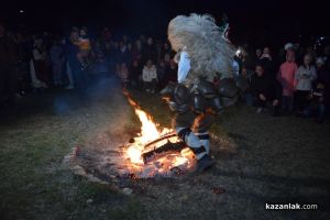 Тази година огънят се издигна високо, което повелява, че годината ще бъде плодородна и здрава. Край буйните пламъци, с чанове и хлопки, кукери изгониха болестите и злото от Казанлък.