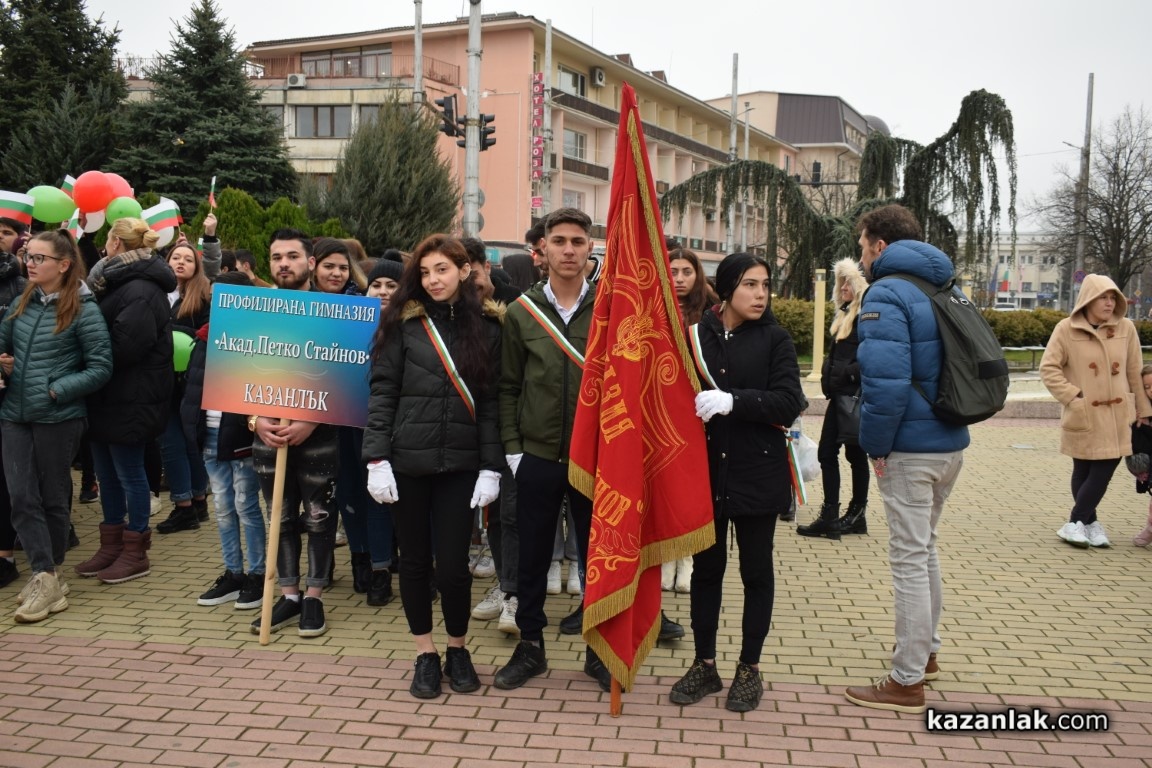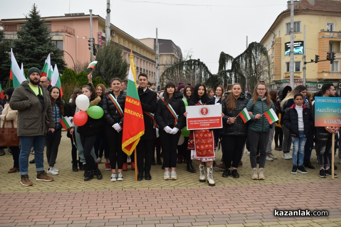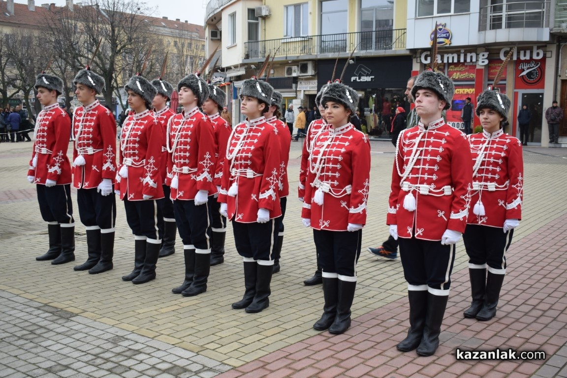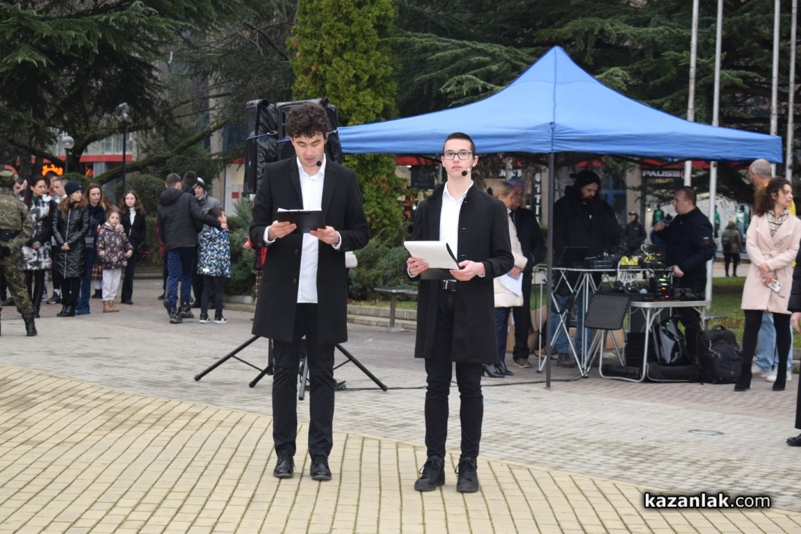 В навечерието на националния празник на България Трети март Община Казанлък даде начало на тържествената програма с официалната церемония по издигане на националния флаг тази вечер на площад „Севтополис“.