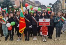 Гимназистите от ПГЛПТ, предвождани от знаменната група на гимназията, взеха участие и в официалната церемония по издигане на националния флаг на централния площад “Севтополис“ в Казанлък.