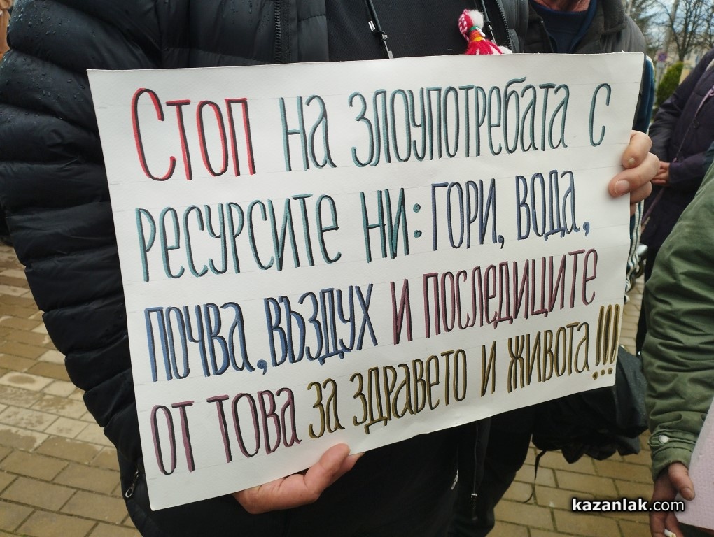 Повече от сто човека се събраха в центъра на Казанлък днес в 17:30 часа, за да изразят несъгласието си с намерението на „Кастамону България“ АД да разшири инсталациите си за производство на смоли. Причина за поредния израз на несъгласие на хората бе и липсата на отговор от Министерството на околната среда и водите по жалбата на инициативния комитет.