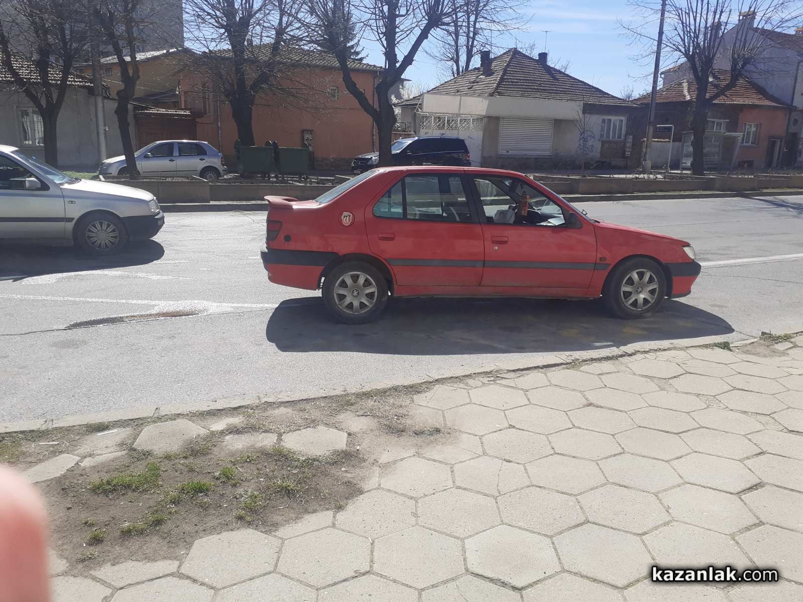 Катастрофирало Пежо осъмна на спирката на бул. „Княз Александър Батенберг” днес в Казанлък. За ударената и изоставена кола съобщиха наши читатели и собственици на търговски обекти в близост.