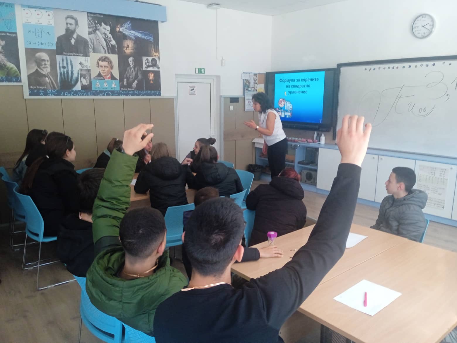 Момичетата и момчетата от 8 б клас дадоха всичко от себе си и отговаряха на въпроси от различни области на познанието свързани с математиката.