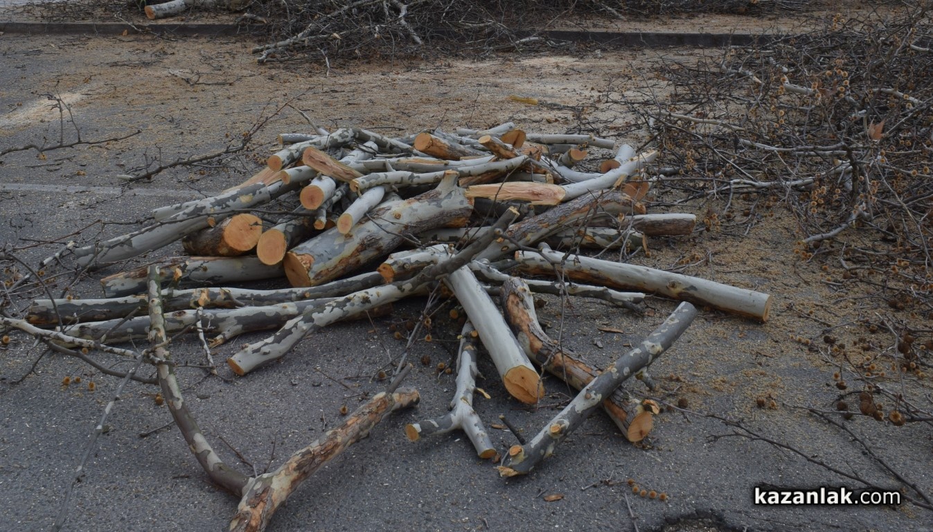 Времето е необходимо на Общинското предприятие „Комунални дейности и поддръжка на инфраструктурата“ към Община Казанлък за профилактично премахване на опасни и сухи клони на дървета по бул.„Никола Петков“.