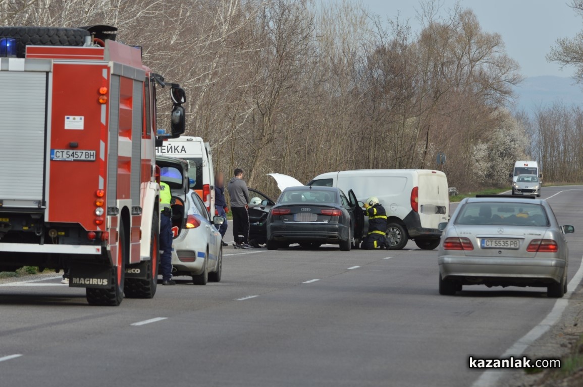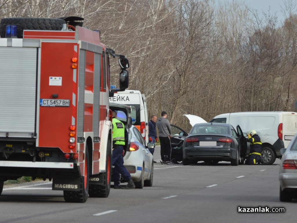 Катастрофа между два леки автомобила стана на пътя Казанлък - Стара Загора преди минути. Единият от шофьорите е пострадал.