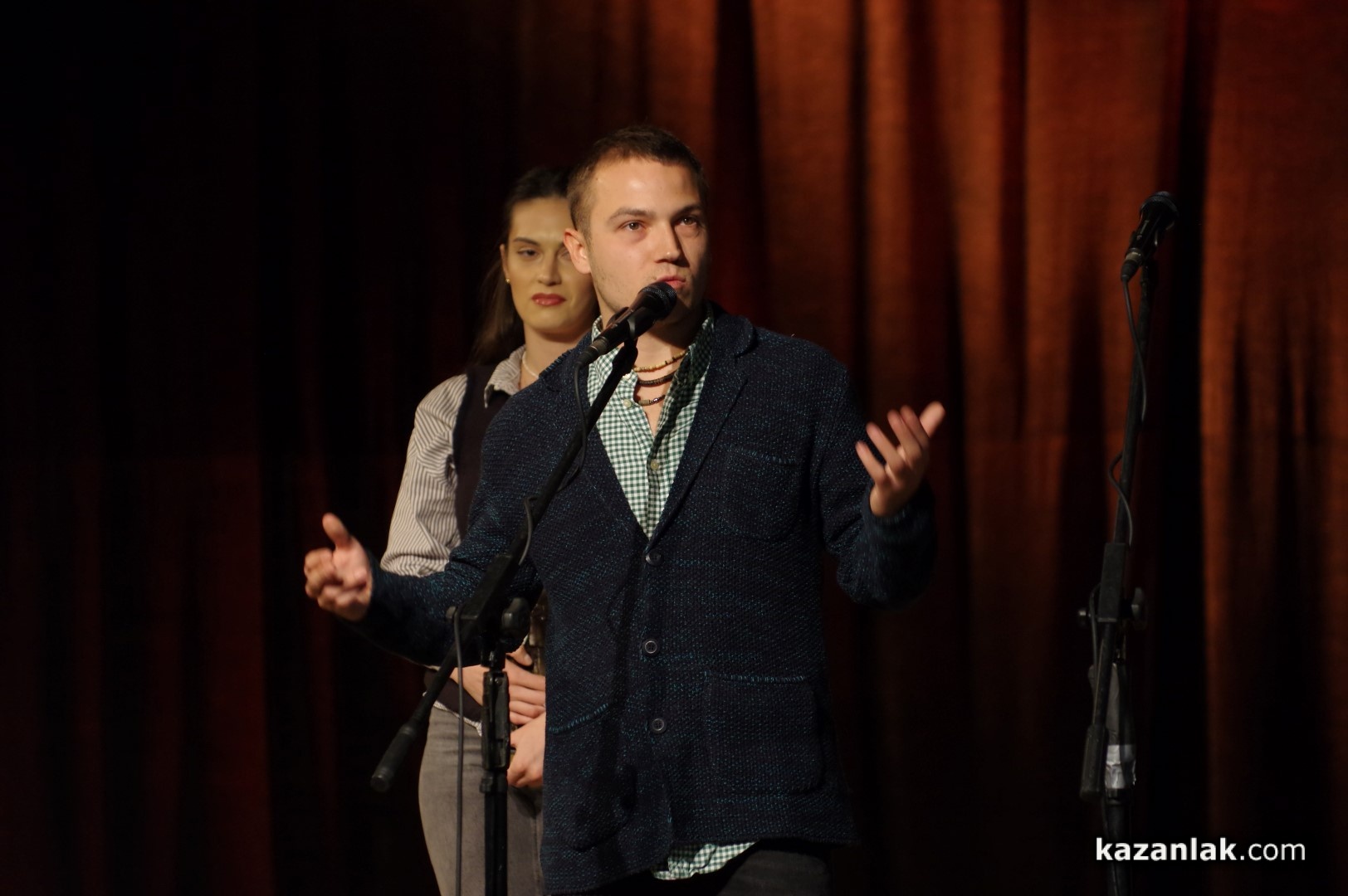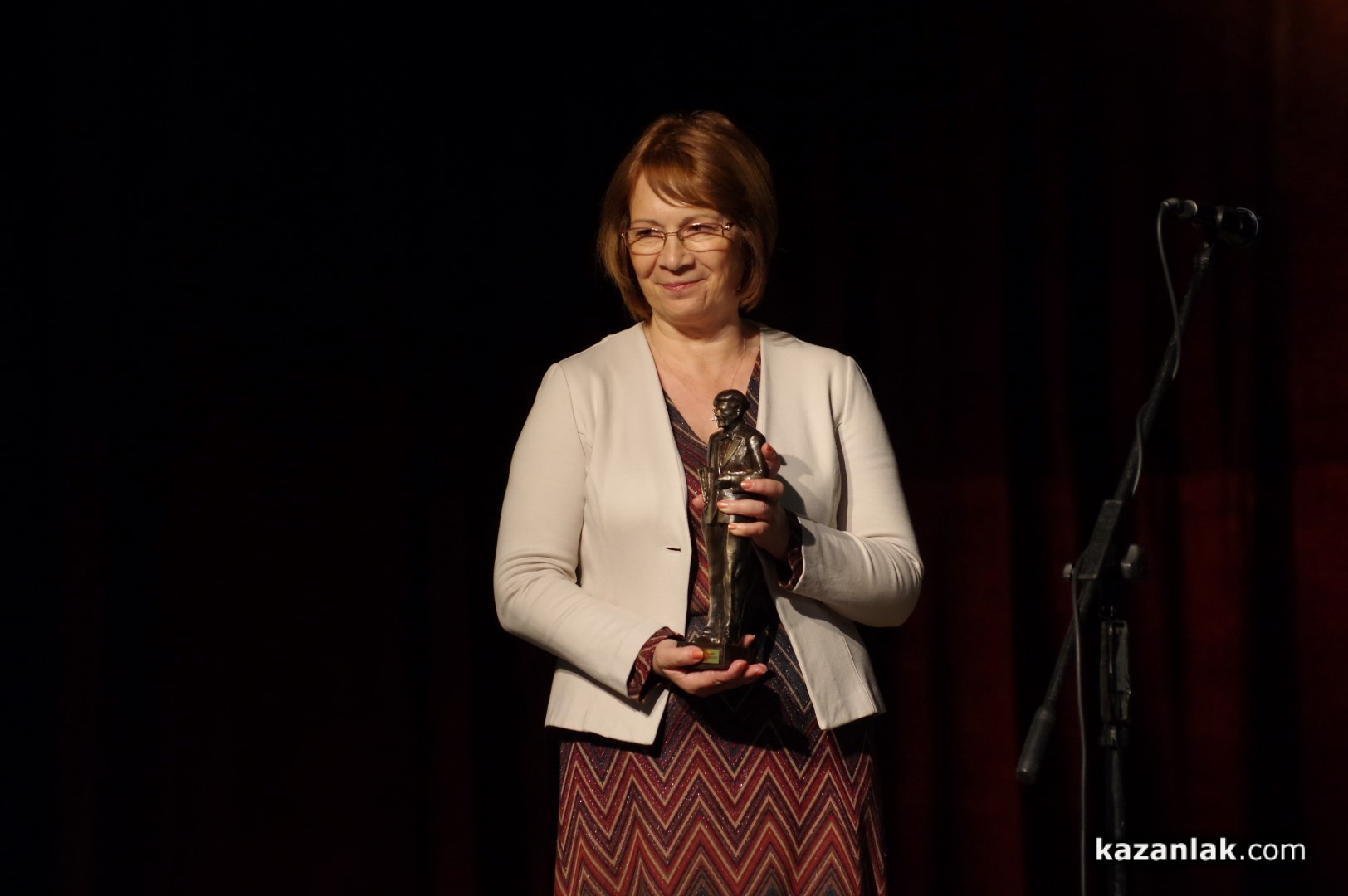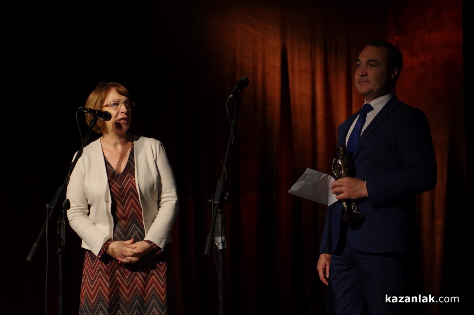 20-та награда „Комедиен хит на сезона“ с гласуване на публиката тази вечер бе спечелена от постановката „Не сме от тях“ по Чудомир на Музикално-драматичен театър "Константин Кисимов" – Велико Търново с оценка 5,80. Красивия плакет с лика на обичания Димитър Христов Чорбаджийски – Чудомир връчи навръх Деня на хумора и сатирата Кметът Галина Стоянова на сцената на зала „Любомир Кабакчиев“: „Днес е необикновен ден! Ще го запомним не само с празниците, посветени на нашия именит съгражданин Чудомир, но и с много необичайни събития. Първи април е ден на лъжата. Първи април е две седмици преди Великден. Първи април е и ден за размисъл. Много в едно. Днес дъждът ни изкъпа в прекрасна пролетна красота. Той изчисти тъмното от сърцата ни, изчисти наслоеното през зимата и даде смисъл да се усмихнем, да очакваме слънцето и топлината. Всичко това е знак, че душите ни са се отворили. Радвам се на пълната зала, нашата, общинската зала.“, отбеляза в приветствието си Кметът на Казанлък пред пълната зала. „Какво по-хубаво от това да усетиш духовната храна, да отделиш стотинки за билет?!“, възкликна тя. Кметът на Казанлък благодари на Борис Кърчев, председател на Фондация “Чудомир” и на Добрина Матова, директор на Литературно-художествен музей “Чудомир” за интересните и добре организирани Чудомирови празници. Галина Стоянова изрази удовлетворение, че хубавите събития във всички сфери на живота в Казанлък се случват успешно, защото хората живеят в една общност. „Аз благодаря на Вас, казанлъчани, че продължавате да носите това хубаво, богато казанлъшко сърце, което твори, създава и разцъфтява Казанлък!“, каза Галина Стоянова.