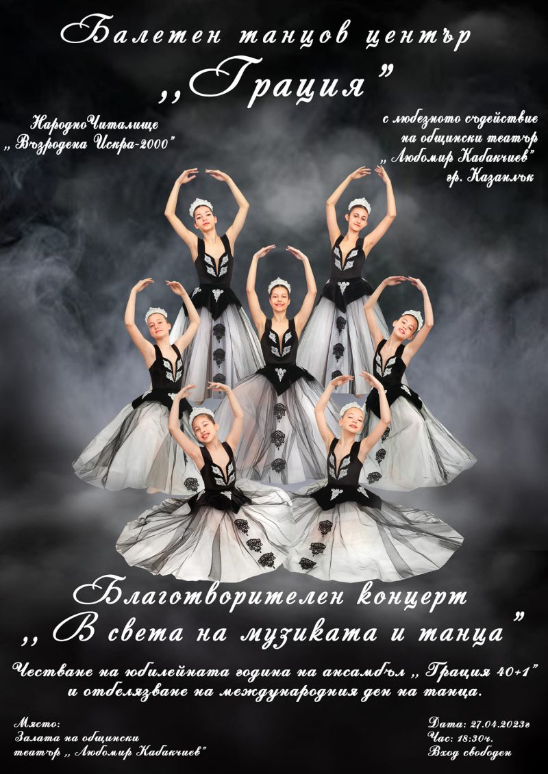 „Заповядайте на един празник за душата! Да подкрепим талантливите деца на Балетен танцов център „Грация“. „Грациите“ на Казанлък заслужават това!”, апелират двете треньорки Алла и Юлияна Ангелови.