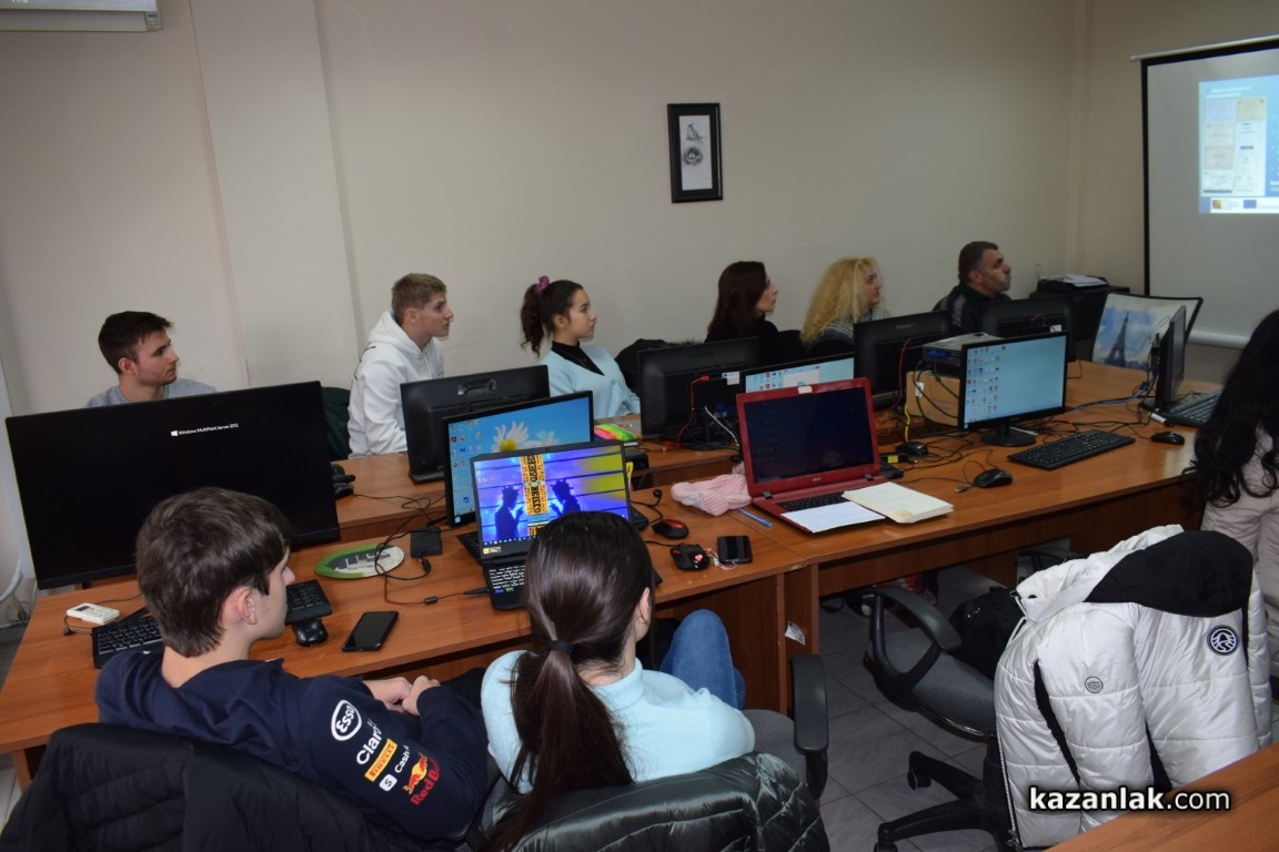 След оценката на резултатите, Управителят на ИКТ Център поздрави участниците и пожела на всички присъстващи успех в следващите проекти! Съобщи, че стартира записване за следващия професионален курс „Програмист“, 660 учебни часа, 60 от които ще бъдат обучителен стаж в гр. Севиля в периода 21 август до 3 септември в тема „Колаборативна роботика“. Завърша с полагане на държавен изпит и получаване на Свидетелство за професионална квалификация за придобиване на професия "Програмист". Учениците трябва през юли да бъдат със завършен 10 клас и с интерес към програмирането и ИКТ и много добро владеене на английски език. Учители – от ППМГ „Никола Обрешков“. Бройките са ограничени до 12, има записани 5. Обучението е платено, в зависимост от броя записани. Двуседмичното обучение в Испания е по програма "Еразъм+" и е напълно безплатно - пътуване, настаняване, пълно изхранване и култура програма. За заявка попълнете формуляр https://forms.gle/BfUt1EgSB1TTqqRQ6 Информация : на 0878216023