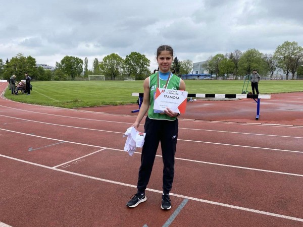 Поредното злато, след Ямбол и Видин, нашето момиче получи от трибоя 60 м., скок дължина и 600 м. от четвъртия кръг на турнира, който се проведе на 4 май в Националната спортна академия в София.