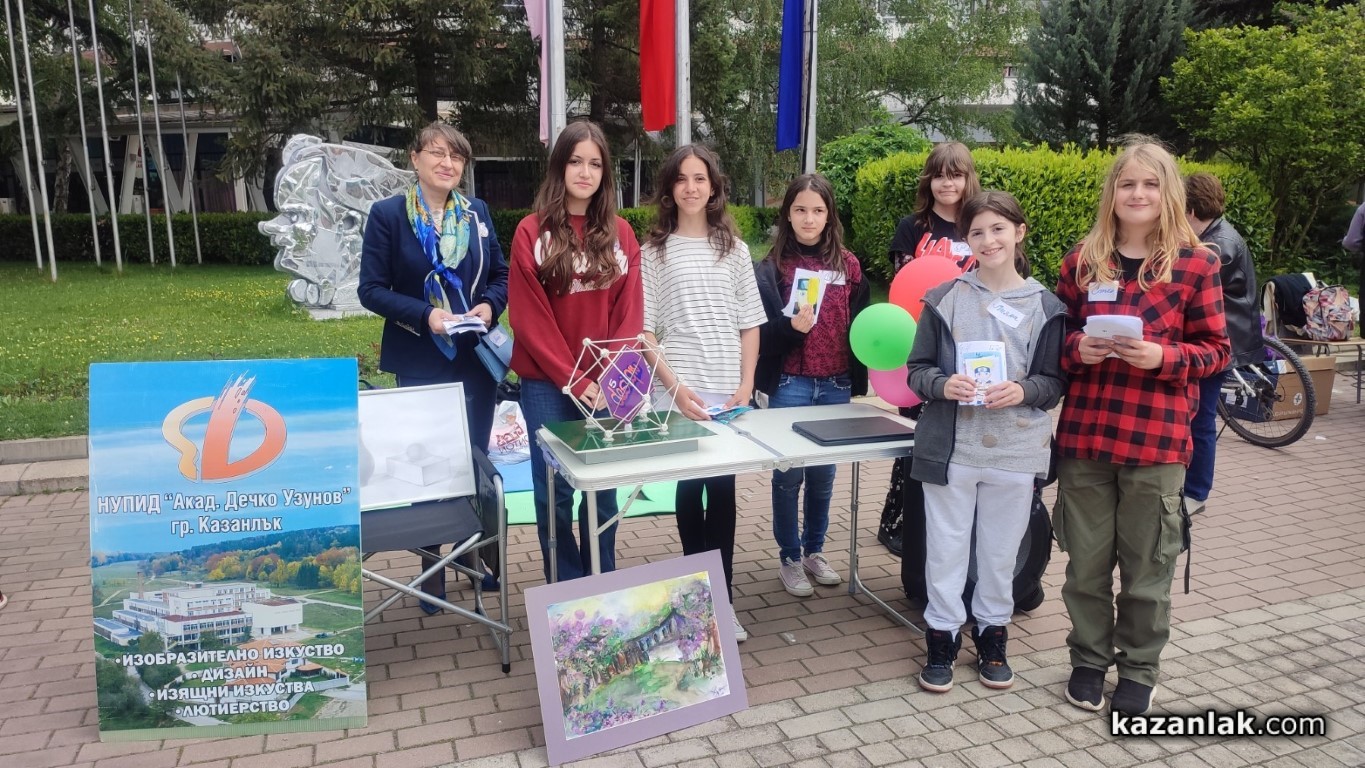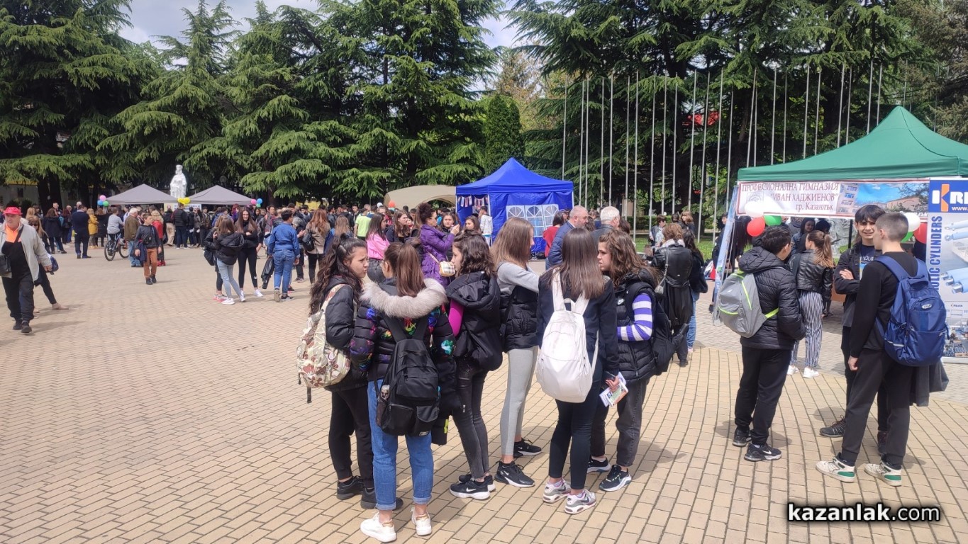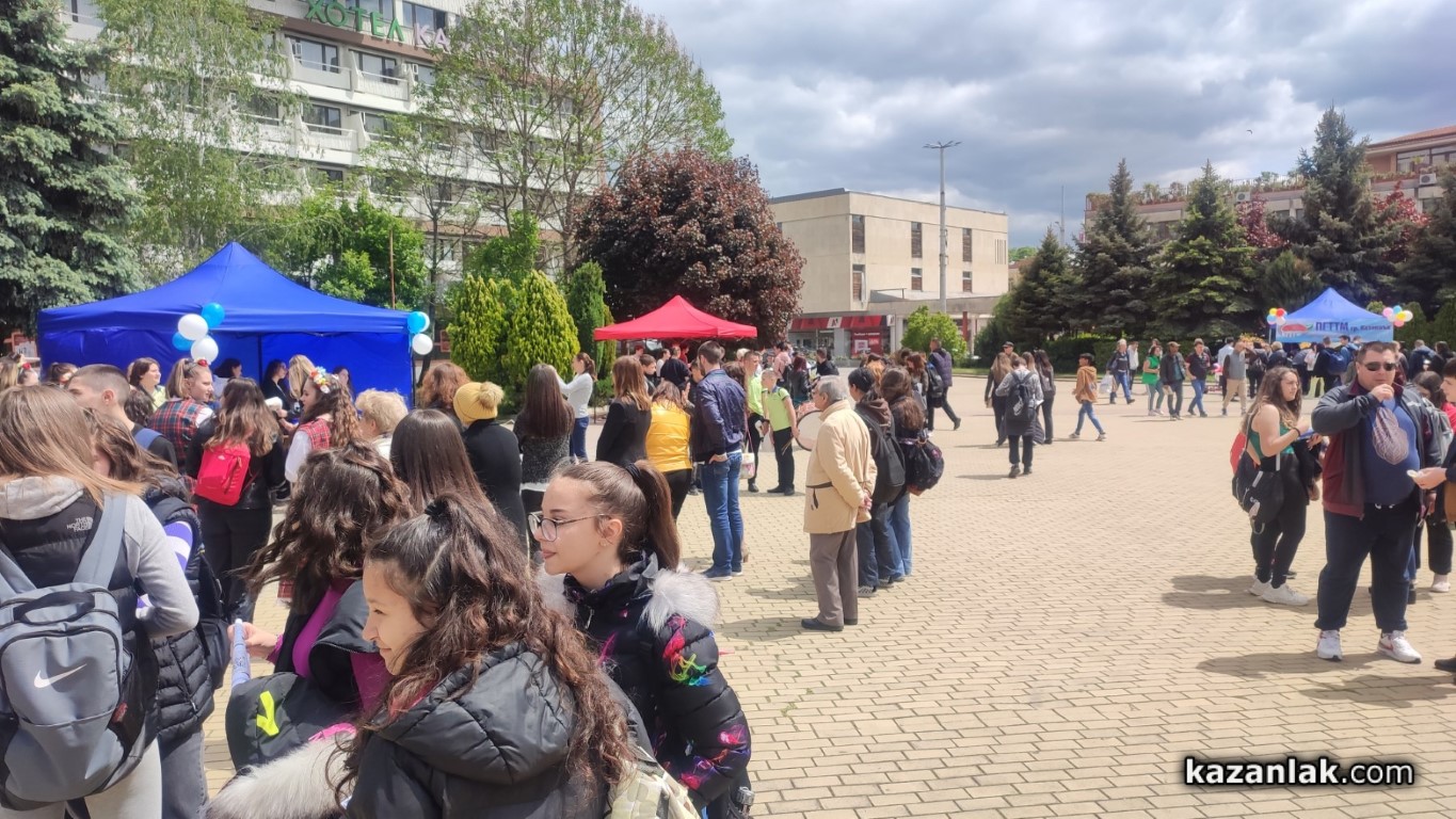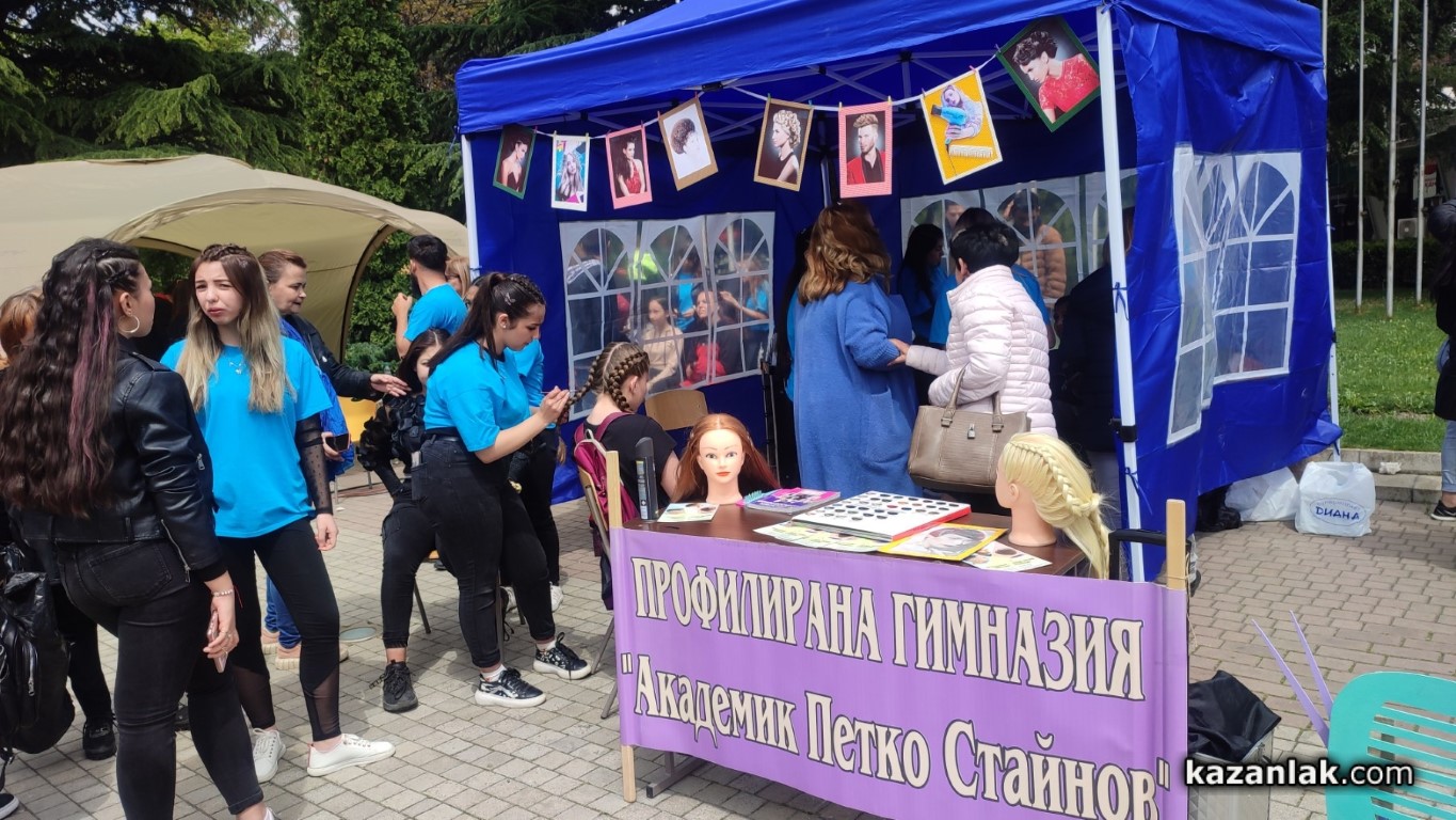 Пред множество от кандидат-гимназисти, родители и просто преминаващи по площада казанлъчани, професионалните, профилирани и средни училища представиха своите специалности за предстоящата учебна 2023-2024 година.