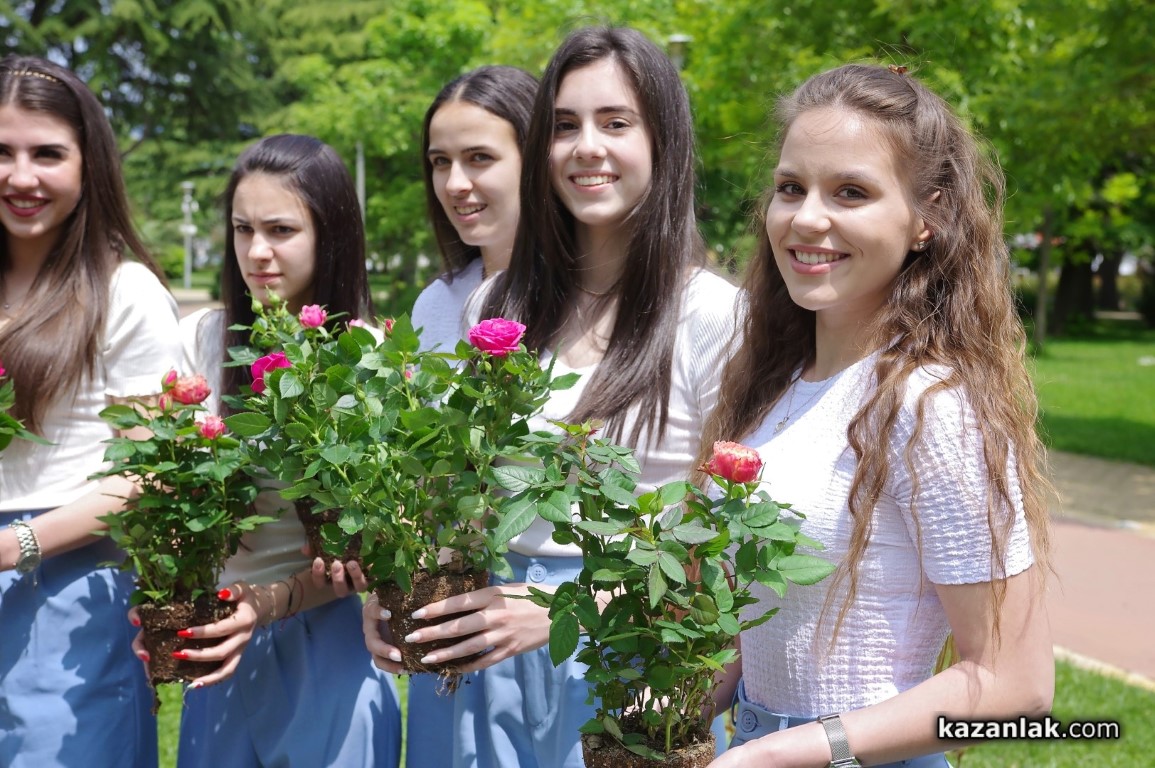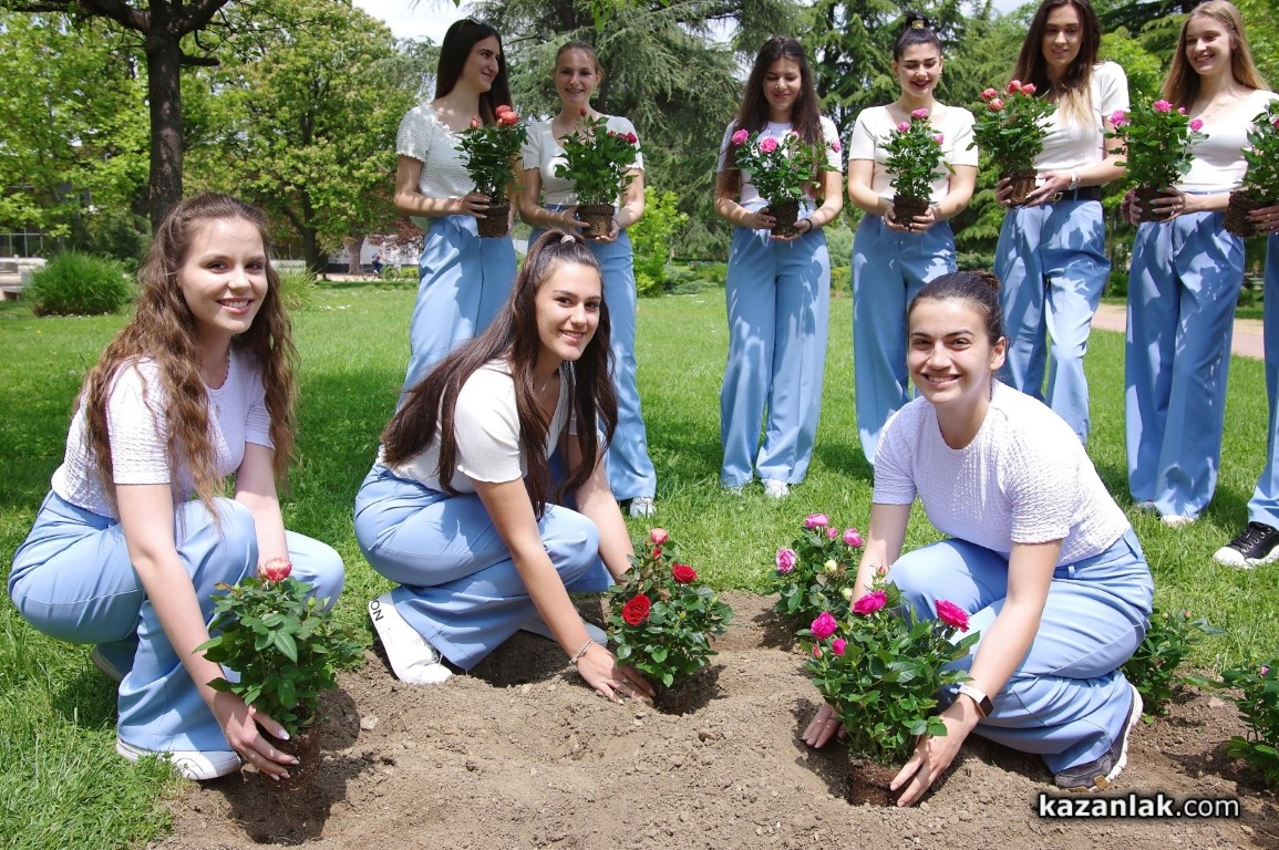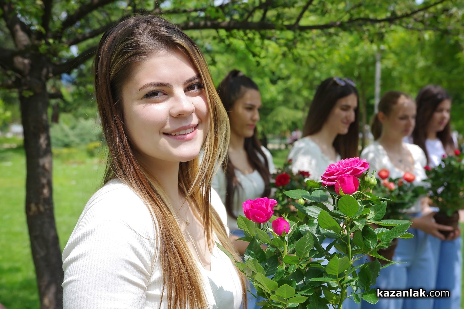 За поредна година парк Розариум бе обогатен с още 21 рози, посети лично от претендентките за короната Царица Роза 2023. Със засаждането на свеж стрък рози всяко от момичета – абитуриентки спазва обичая да разхубавява Казанлък за предстоящите празнични дни.