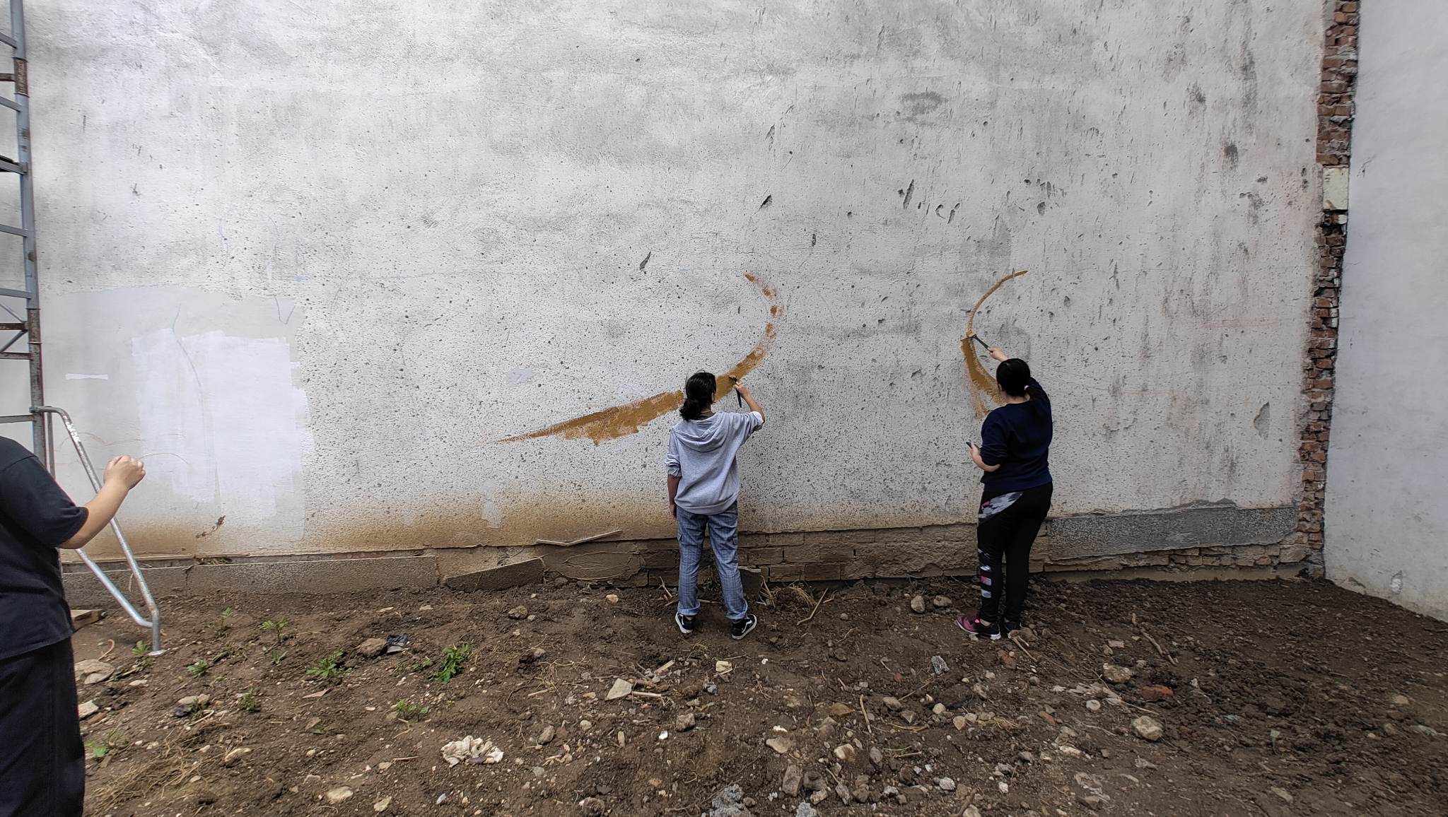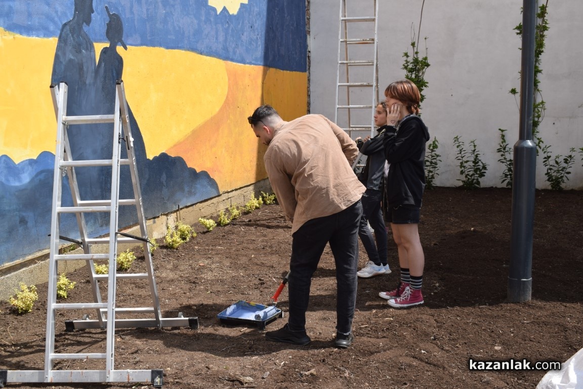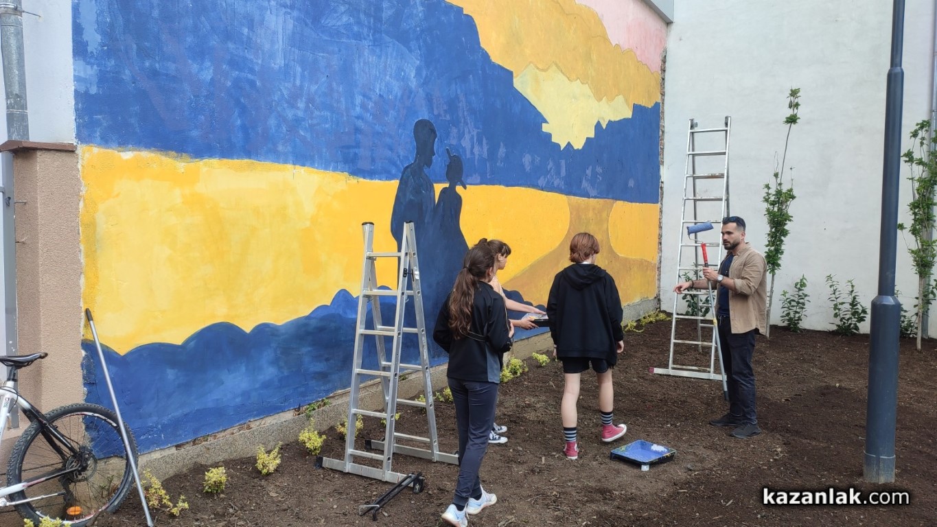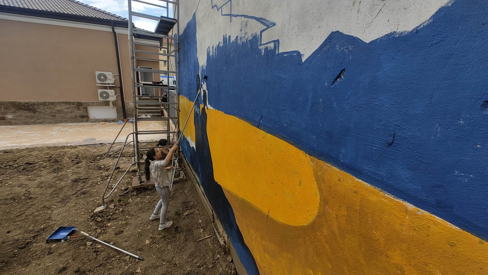 Изрисуването на пространството отне на учениците 3 дни, които с помощта на стълби и скеле успяха да разкрасят празната стена, въпреки че в първите дни са работили буквално под дъжда.