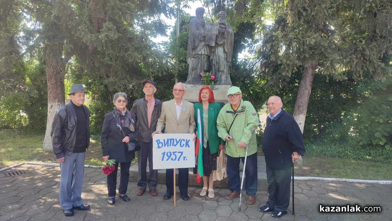 На тържеството присъстваха няколко членове на Випуск 1957 на гимназията. Те поднесоха цветя пред паметника на Светите братя и запечатаха празничния ден със снимка.