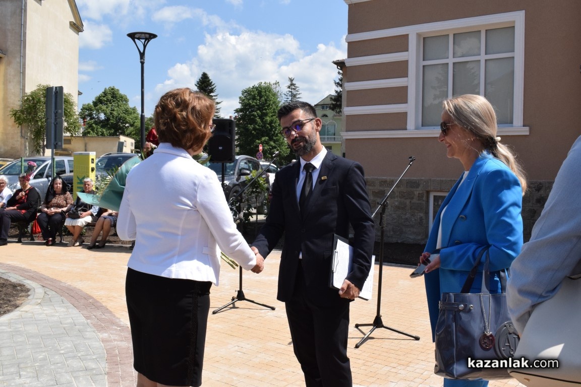 По време на официалната церемония по откриване на новото музейно пространство Кметът на Казанлък обяви, че заедно с Монетния двор към БНБ, Община Казанлък е изработила юбилейна монета за 120-та годишнина на Празника на розата, която олицетворява роза Дамасцена в слънчева светлина, изработена от розетка, матов фон, с гланцирани лъчи. С новата награда тя благодари приноса на няколко казанлъчани пространството около Музей „Иван Милев“ да бъде преобразено. Кметът на Казанлък отличи архитектите Ивелин Недялков и Лъчезар Николов, директорът на Общинското предприятие „Комунални дейности и поддръжка на инфраструктурата“ Теменужка Люцканова, Евгени Генов, който изработи фигурите на свирещите музиканти край елегантната статуя на Японката за радост на казанлъчани и директора на Художествената галерия д-р Пламен Петров.