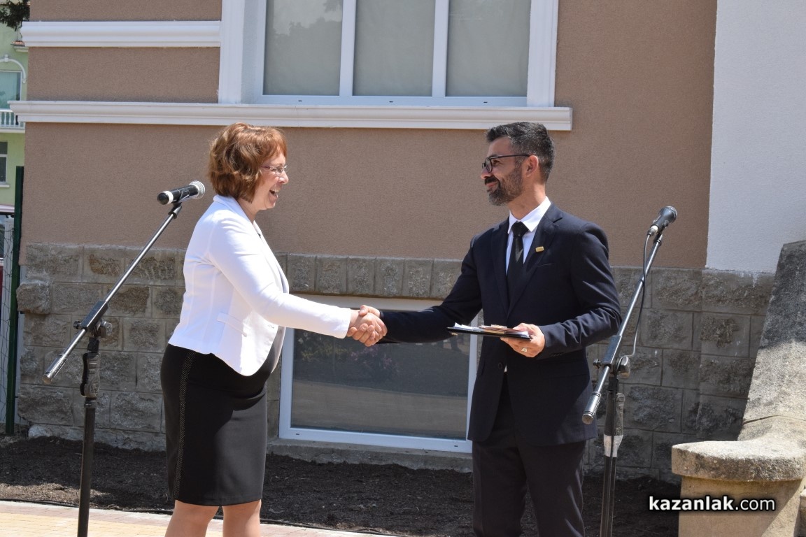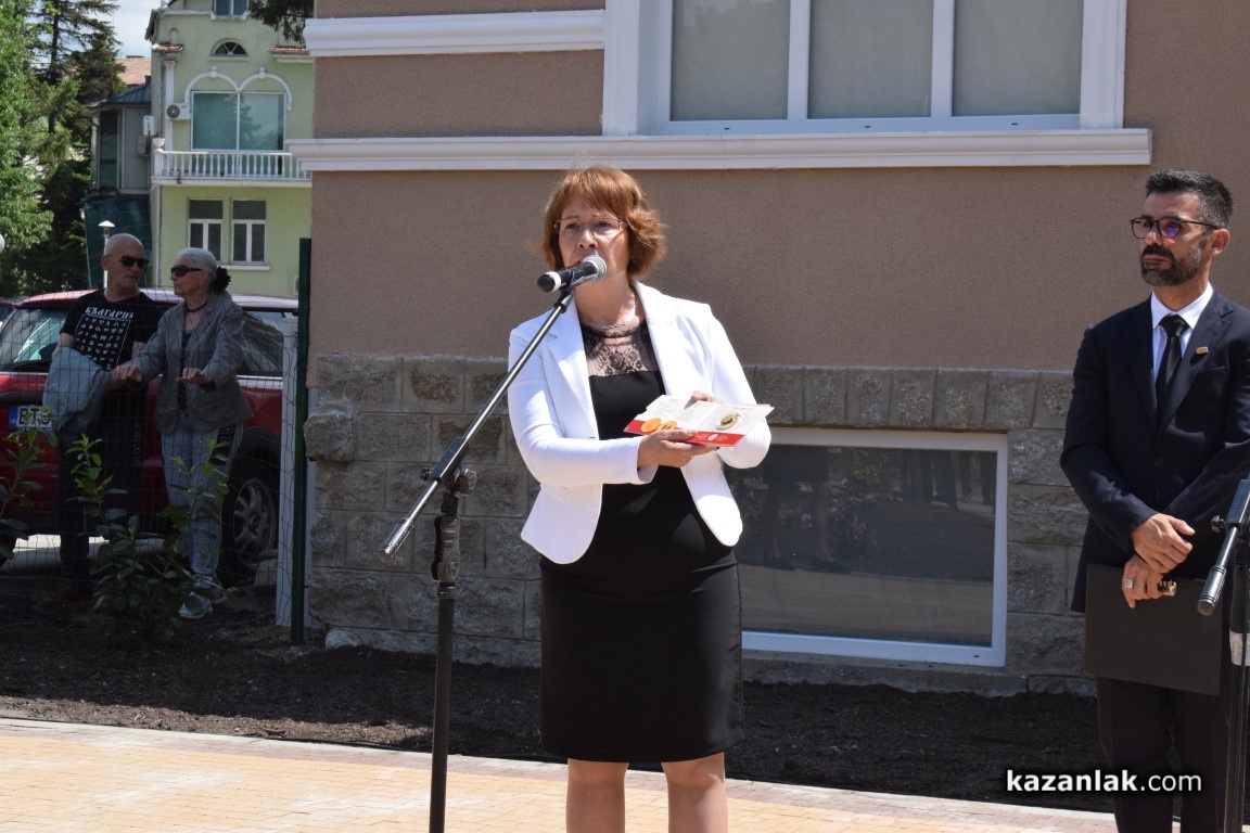 Кметът на Казанлък поздрави събралото се множество за 24 май: „Честит духовен празник! От Община Казанлък считаме, че трябва да благодарим на нашите учители, които прегръщат трепкащите дечица сутрин в първия учебен ден и отварят крилата им, когато завършват училище! Да благодарим на директорите на училищата и детските градини, които направиха от тях храмове на духовността!“, заяви Галина Стоянова. „Днес е специален ден, който посвещаваме на дейците на културата и изкуството, с които Казанлък хилядолетно се гордее, защото те са много!“, посочи тя. „Днешният 24 май ще се запомни с един от тях. Нашият съгражданин, малко известен, но световно разпознаваем – художникът Иван Милев.“, отбеляза Кметът на Казанлък. Тя обърна внимание, че усилията на културните дейци са внесли дух в старата постройка, превърната в обновена сграда – музей на Иван Милев. „Това ще бъде голямата, световноизвестната казанлъшка галерия и дом на Иван Милев.“, увери Галина Стоянова.