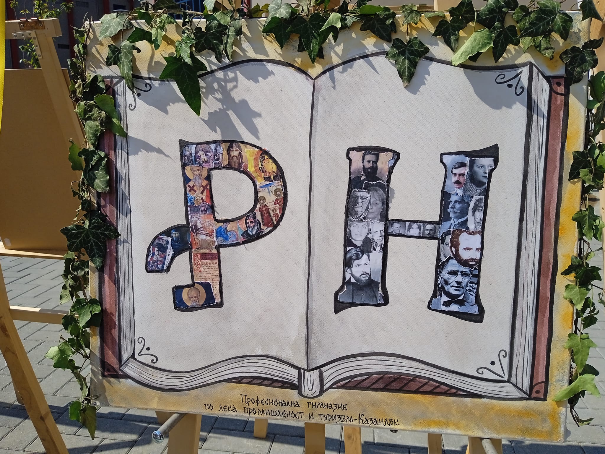 Изключително красива изложба "Алея на буквите" организира Община Казанлък по повод 24 май-Деня на славянската писменост и култура! Всяко училище и детска градина имаха за задача да представят в оригинална рисунка буква от глаголицата и съответстваща и в кирилицата. Денислава и Мертин от 9 а клас са авторите на нашата картина.