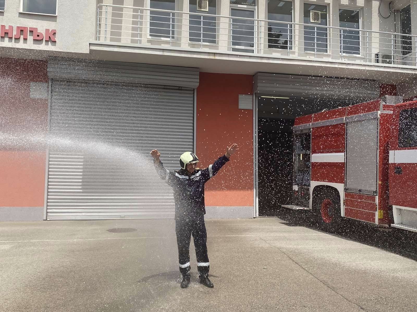 Колегите на инспектор Евгени Турлаков бяха организирали подобаващо изпращане за огнебореца. Спазвайки традицията, под вой на сирени от специалните автомобили, пожарникарите обляха с вода Турлаков, пожелавайки му здраве и дълголетие.