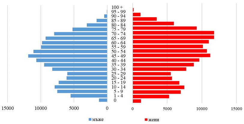 Възрастова структура на населението към 31.12.2022 г.