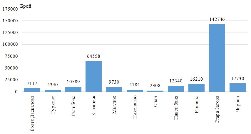 Население към 31.12.2022 г. по общини в област Стара Загора