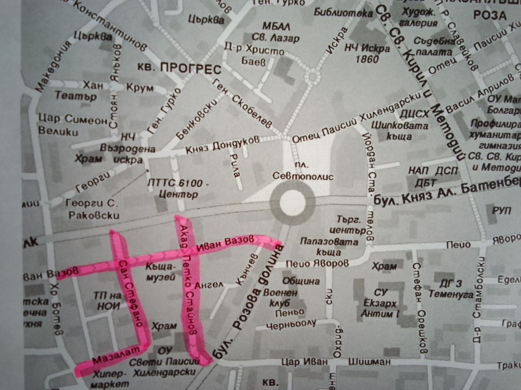 - В участъка от кръстовището на ул.„Мазалат“ с ул.„Сан Стефано“ до кръстовището с ул.„Христо Ботев“.