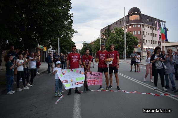 Минути преди 21:00 часа днес, в Казанлък пред сградата на Общината финишираха тримата казанлъчани - Росен Русев, Кольо Райчинов и Младен Гайтанджиев, и техния приятел от Плевен Велин Дилов, които се впуснаха в 650-километровото приключение от заснежените върхове на Олимп до Казанлък. Групата беше посрещната от много приятели и роднини на момчетата.