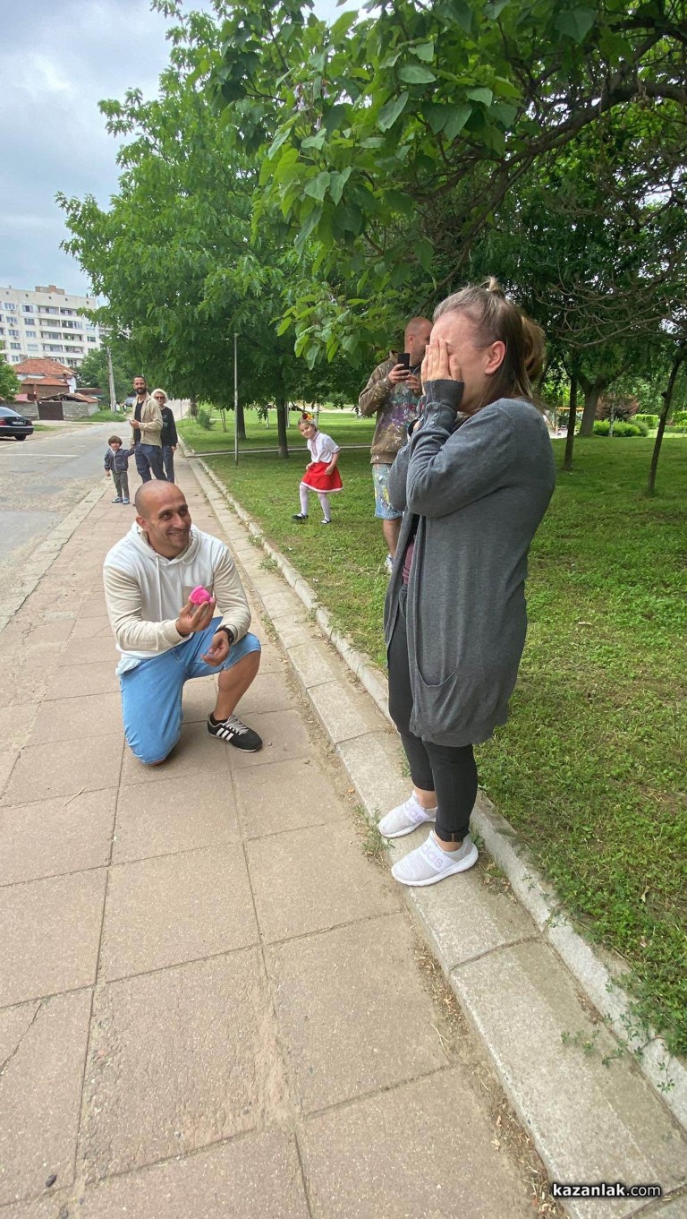 Със сълзи на очите и пред преминаващите казанлъчани, станали свидетели на романтичния жест, Кристина каза Да.