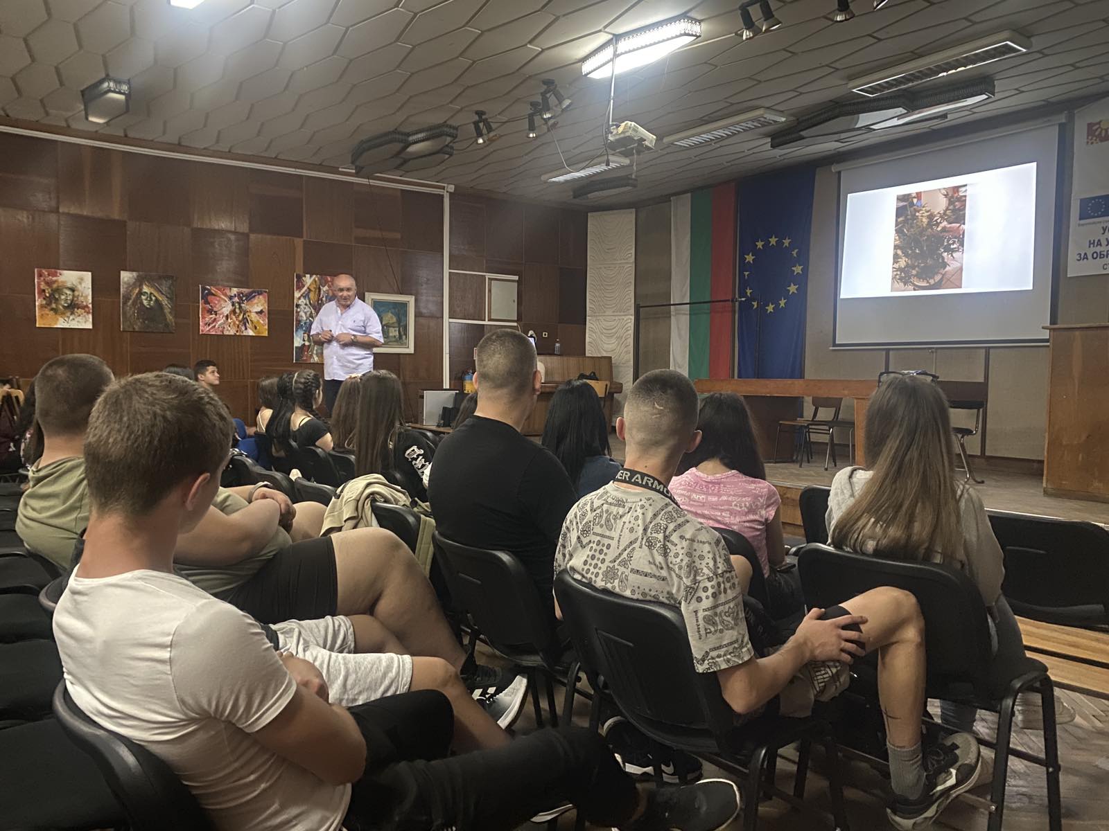 Лектор бе инспектор Петю Петков от сектор ,,Наркотици“ към СДВР, гр.София. Той запозна гимназистите от Професионална гимназия „Иван Хаджиенов“, Национално училище по пластични изкуства и дизайн "Академик Дечко Узунов", Средно училище „Екзарх Антим I“, Професионална гимназия по лека промишленост и туризъм и Профилирана хуманитарна гимназия "Св. св. Кирил и Методий", с различните видове наркотични вещества и с тяхното влияние върху човешкото здраве.