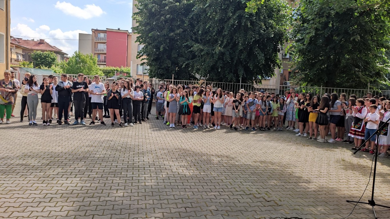 Директорът на училището Сребра Касева награди отличниците със специални плакети и поздрави техните учители.