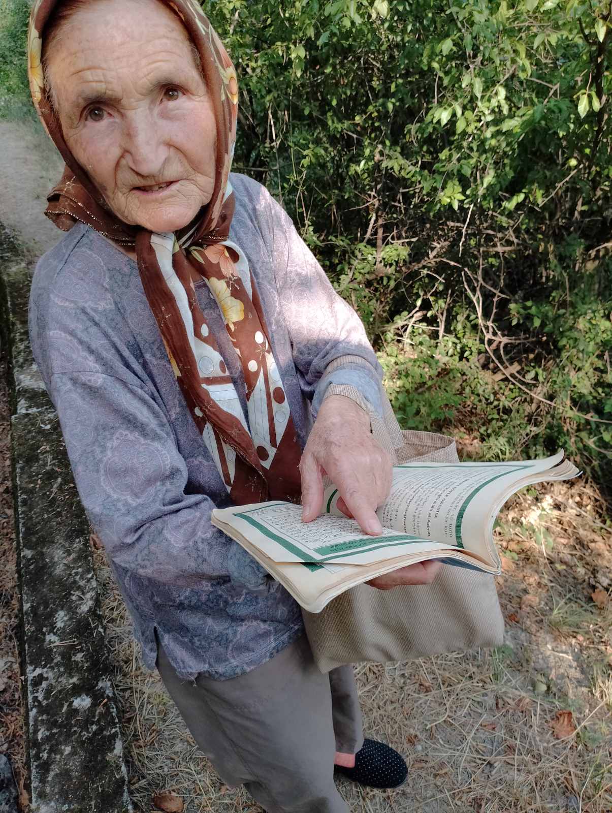 И бърза да каже, че Всевишният дава на всеки туй, дето му е нужно. Когато на нея й трябвало книга, някак тя я намирала. Тъй ставало и с Кораните от които чете. Има дузина. „Или ще ми пратят от Турция или някой тук ще ми подари, но ме намира нужната книга“.