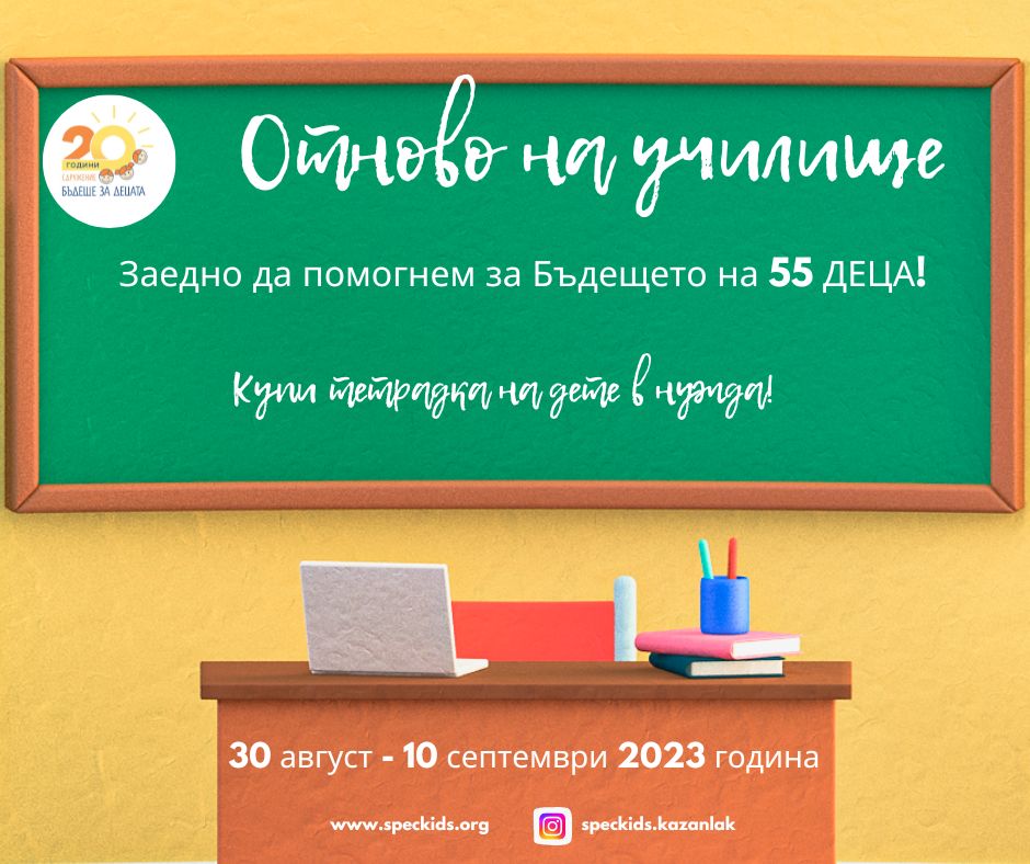 Сдружение „Бъдеще за децата“ стартира благотворителна инициатива „Отново на училище – Купи тетрадка за дете“ по повод предстоящата 2023/2024 учебна година