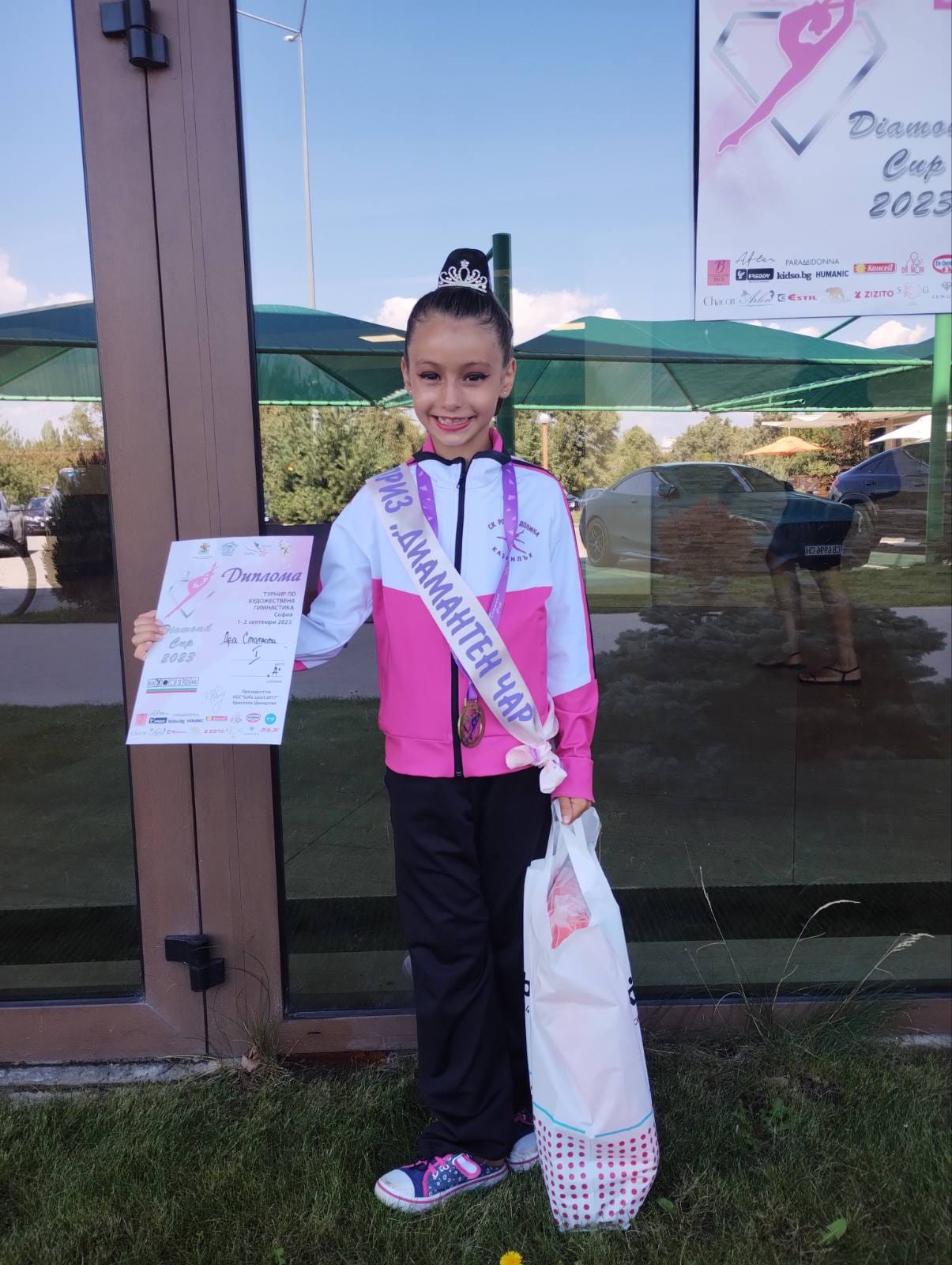 Красивите момичета от града на розите очароваха организаторите на „Diamond Cup“ и бяха удостоени със съответните титли. Деа Стоянова е носител на приз „Диамантен чар“, Божидара Деребеева стана „Изгряваща звезда“, а с приз “ Диамантена танцувалност“ бяха титулувани двете наши грации Николета Иванова и Виктория Паскова.