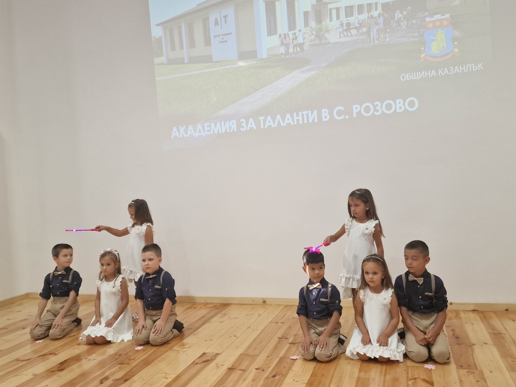 В малък празник се превърна първата среща на широката общественост в обновената сграда на училището в село Розово, която премина под мотото „Академия за таланти – минало, визия за бъдещето.“ В препълнената зала събитието откри Кметът на Община Казанлък, която поздрави Почетните граждани, общинските съветници, представителите на образователната среда, на бизнеса от всички сфери: „Новата сграда трябва да заживее, а Вие сте първите, които вдъхвате живот! Това е знаменателно!“, заяви тя за големия интерес към бъдещата академия. Тя разказа за трима жители на Розово, сътворили идеята и направили първите стъпки към нейната реализация в родното село: „Младият и изключително амбициозен кмет Венцислав Колев, който постоянно прави мястото все по-живописно и цветно, бизнесменът Николай Спиров, който сподели голямото си желание в селото да има училище, арх. Лъчезар и Николай Николов, които правят проекта за новата сграда.“ Всеки от тях сподели първите стъпки, извървени, за да се стигне до начало на обновяване на старото училище през 2020 г. и завършването на модерната сграда три години по-късно.