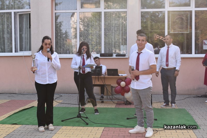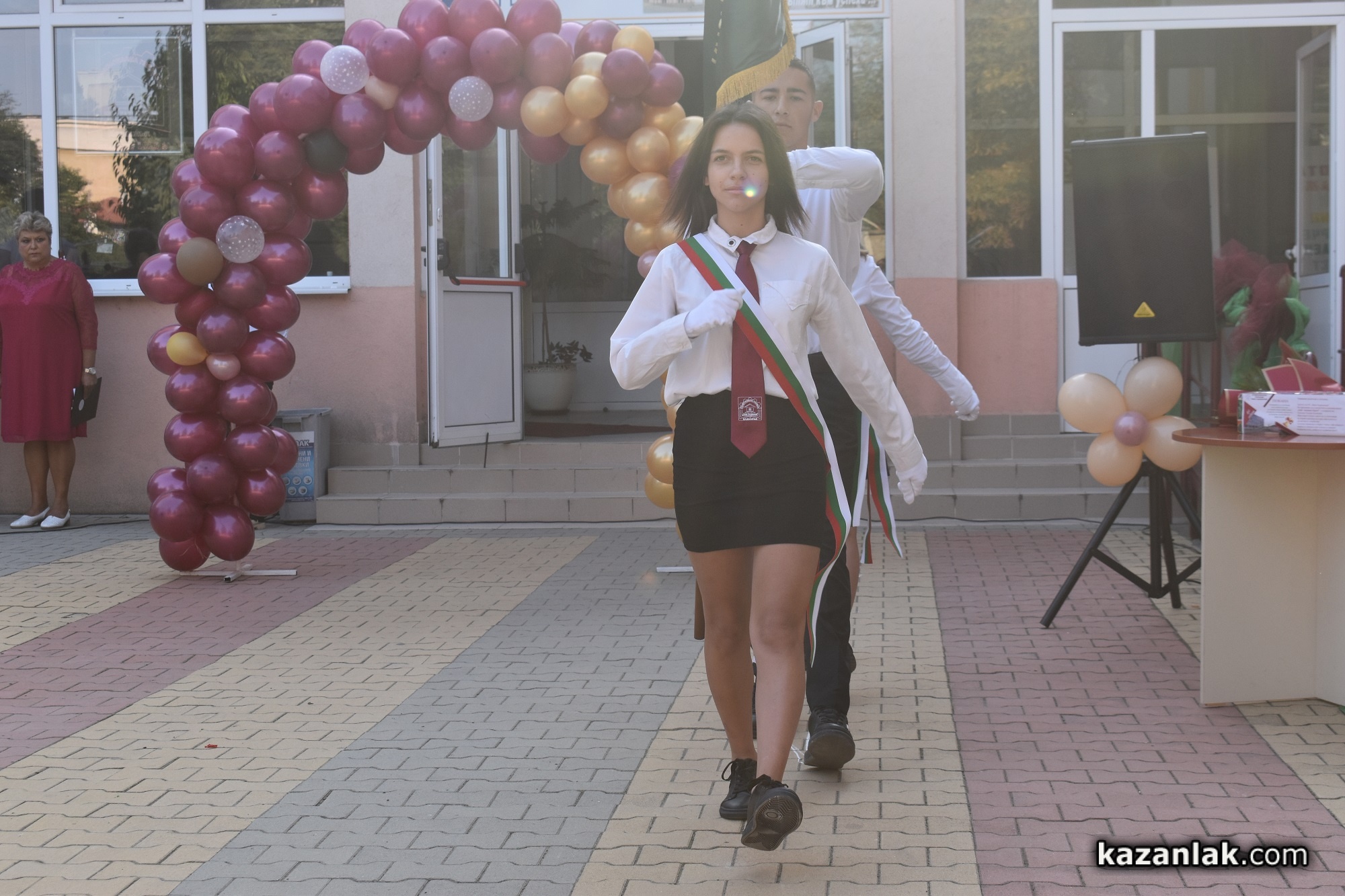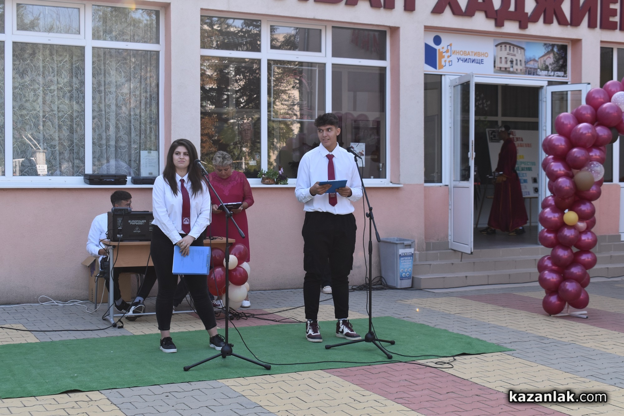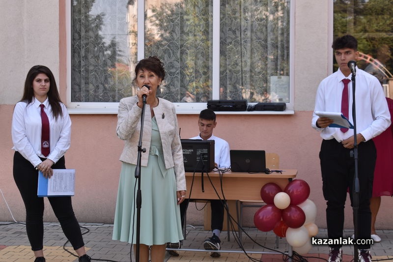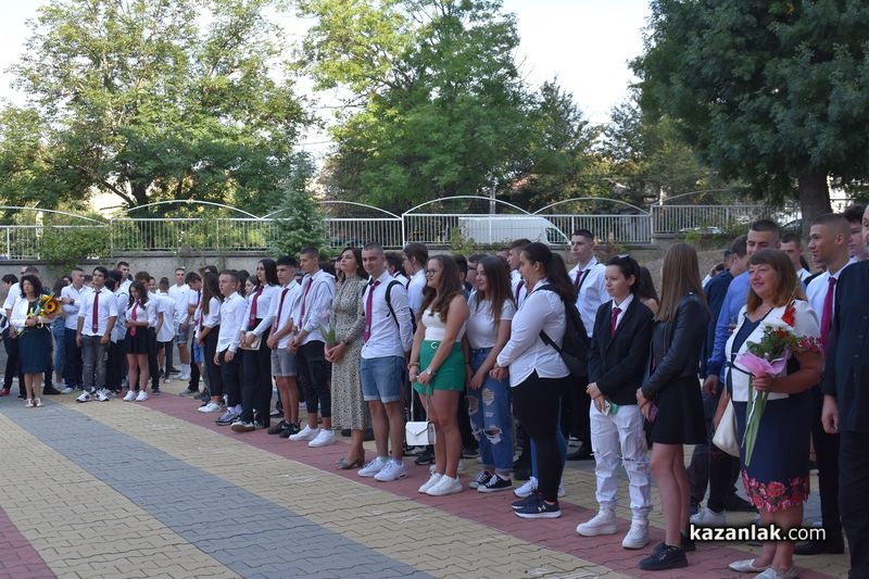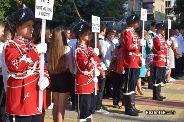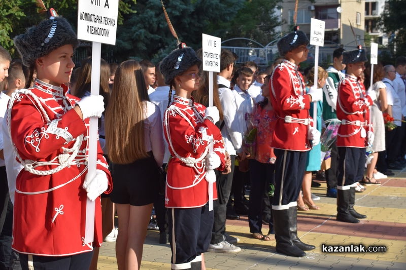104 нови ученици прекрачиха днес за първи път прага на най-старото техническо училище в Казанлък Професионалната гимназия „Иван Хаджиенов“. Учители, ученици и гости на гимназията откриха за 99-ти път новата учебна година под звуците на българския химн и с издигане на българския флаг. С весел глъч изпълниха училищния двор 19-те паралелки, а ръководители и преподаватели пожелаха "на добър час".