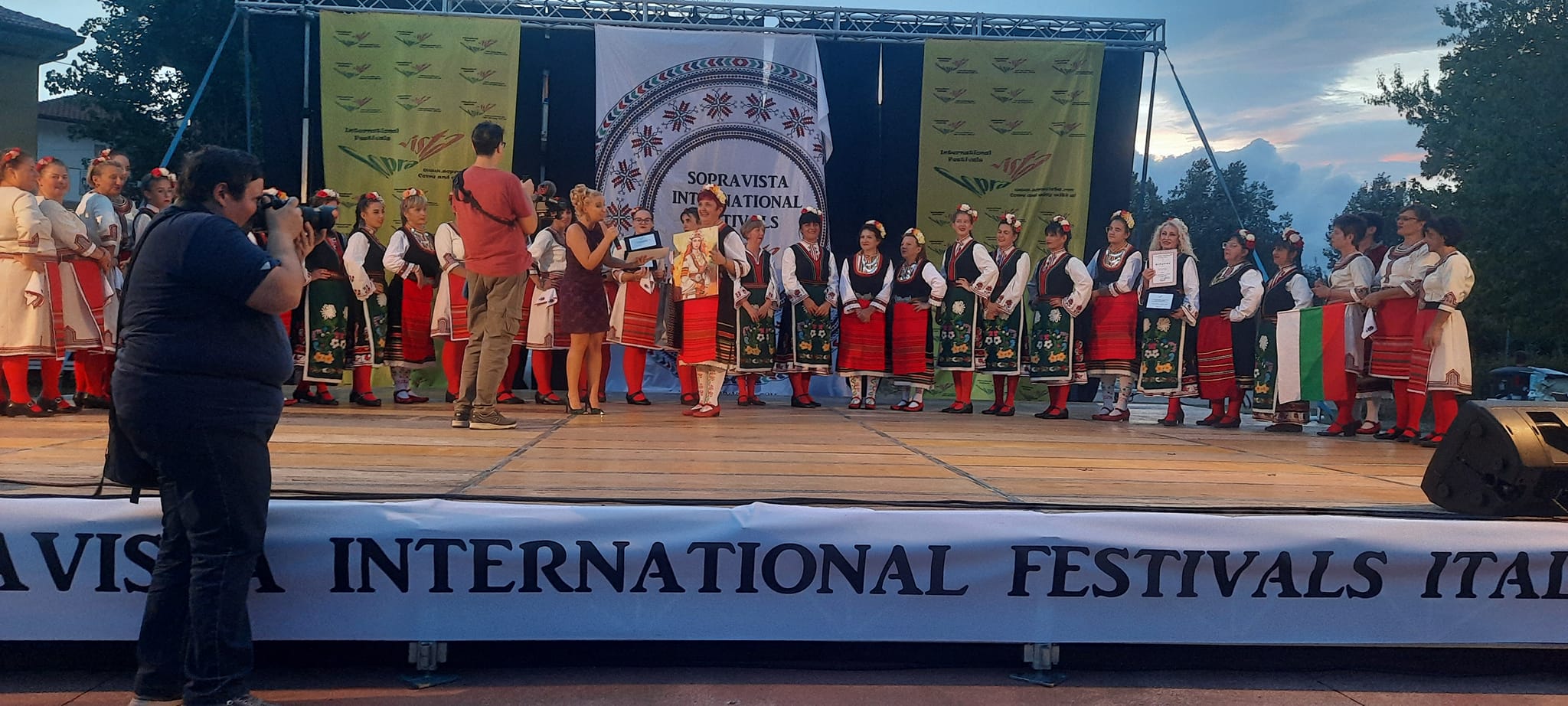 В едни от най- известните морски курорти на Северна Италия град Ричоне се проведе международния фестивал "Sopravista International Festivalsсе", който събра предтавители на фолклора от Италия, Естония, Литва, България, Полша, Иран, Латвия, Словакия и др.