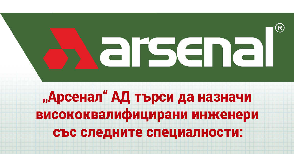 „Арсенал“ АД Търси да назначи Висококвалифицирани инженери със следните специалности: